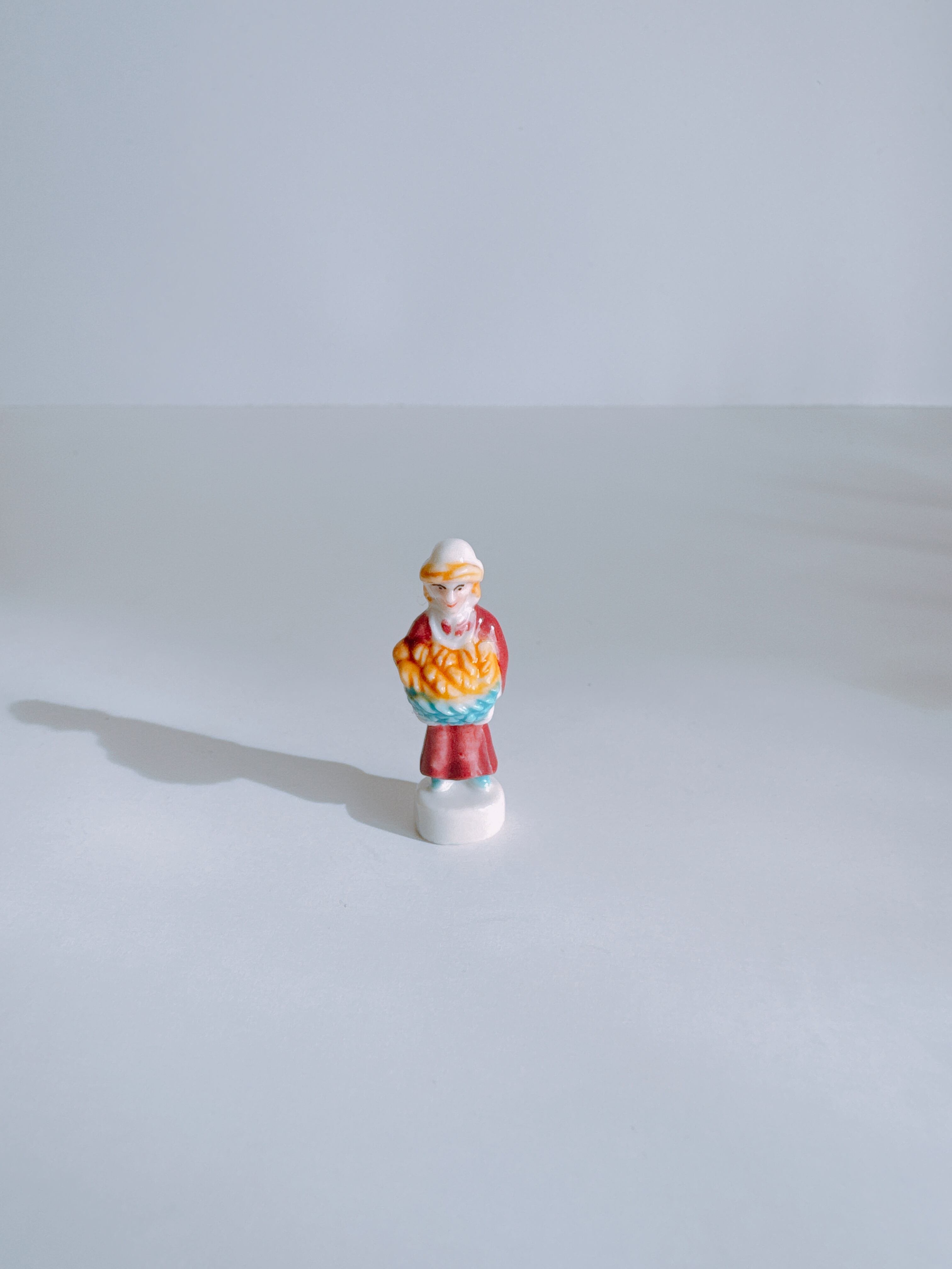 2000年製のフランスの古き良きパン屋の風景を、小さな陶器に閉じ込めた「Au Bon Pain d’Antan」シリーズ。職人の姿、焼き上がったパン、風車小屋、一つひとつのフェーヴが、かつてのフランスの日常を静かに物語るようです。