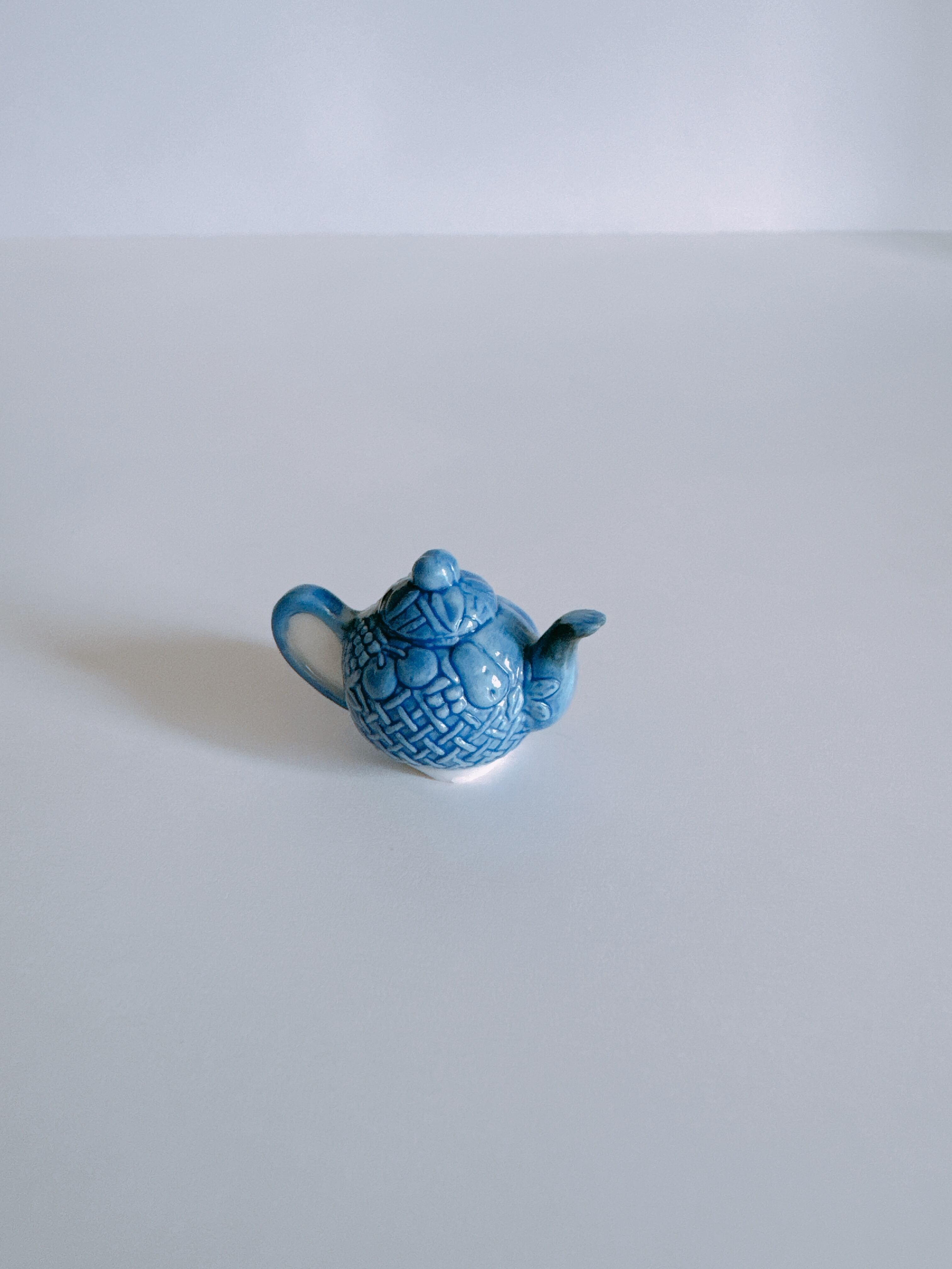 青磁と細やかなフルーツの絵柄が美しいポット。