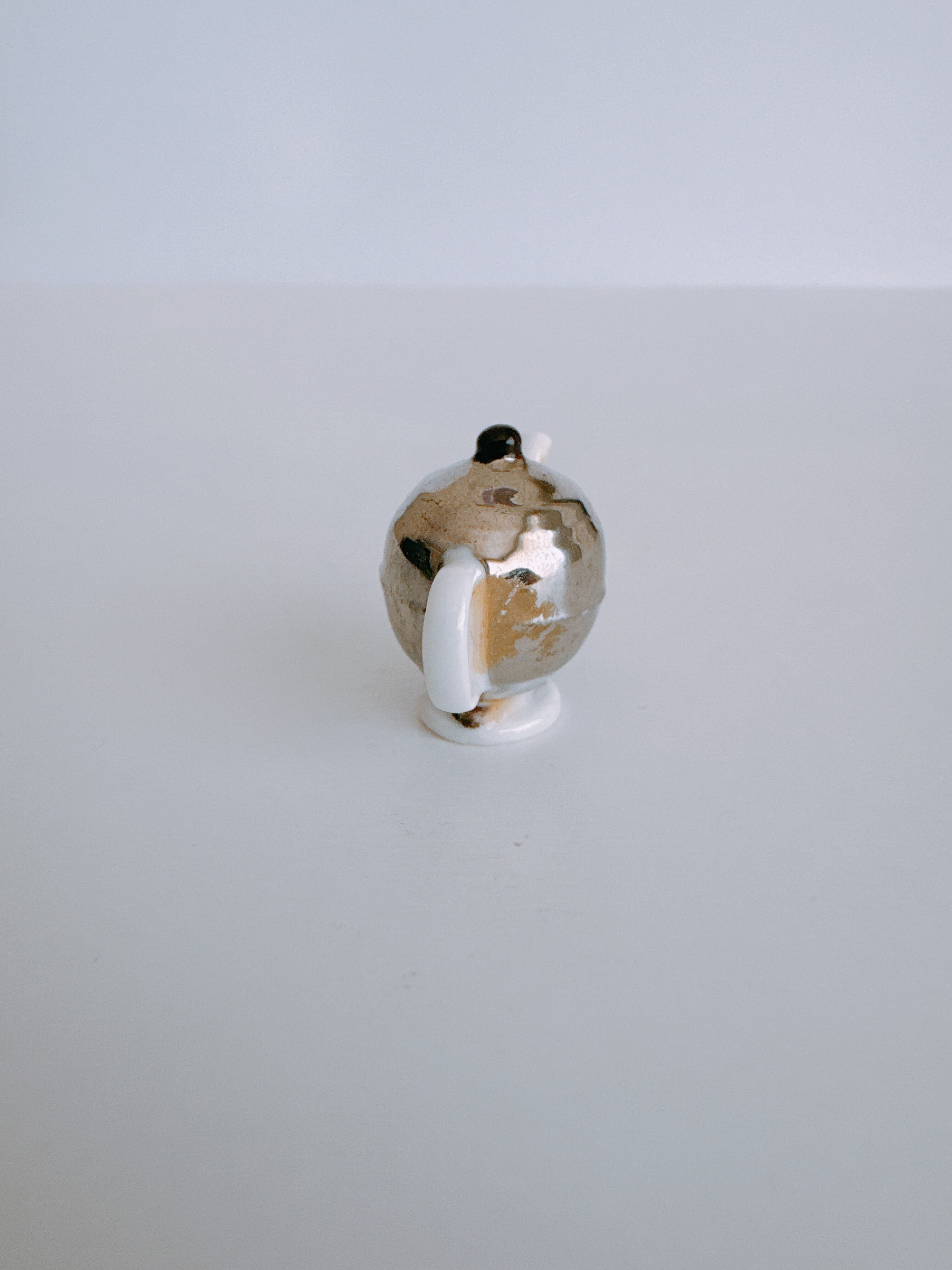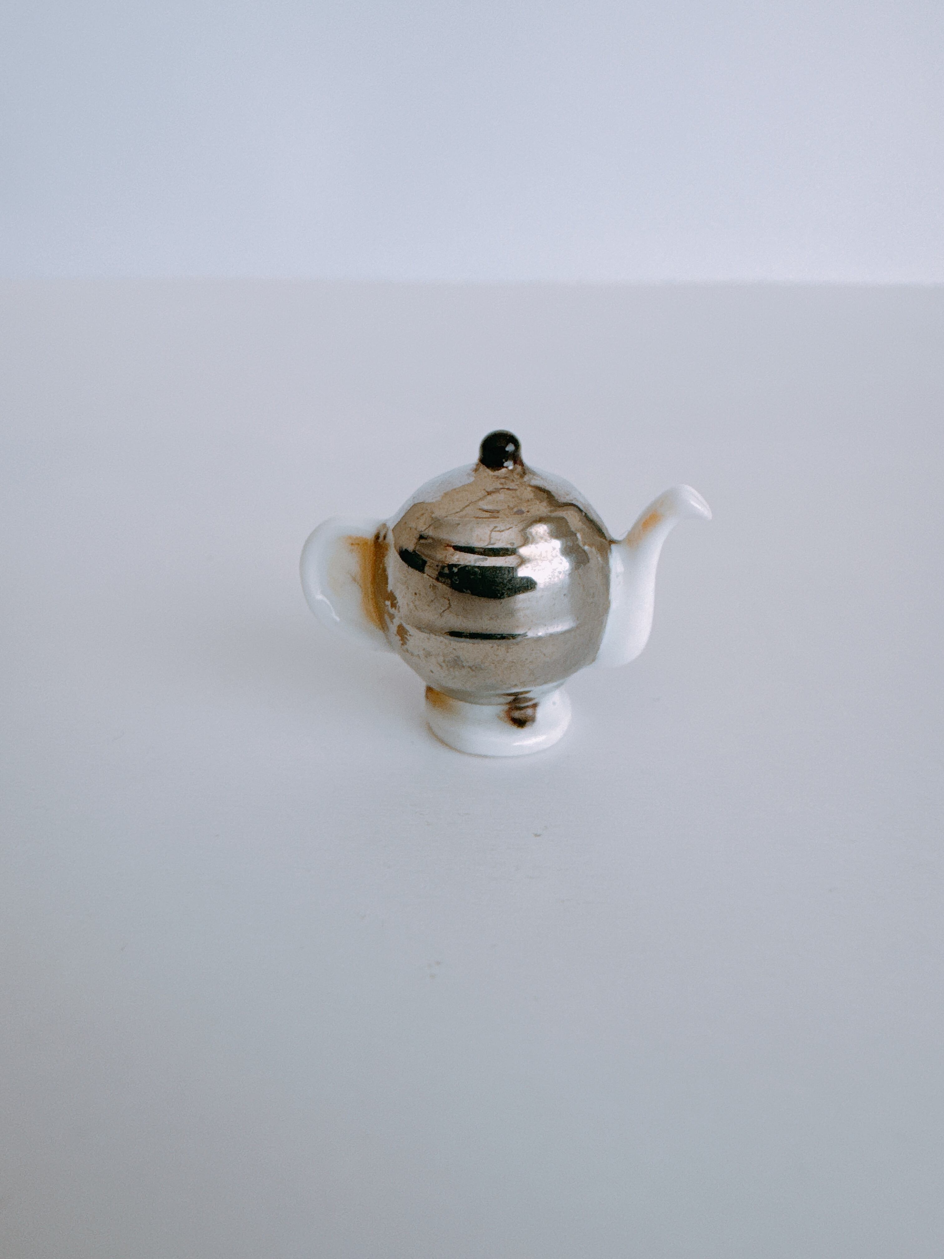 丸みのあるフォルムが美しいシルバーのティーポットフェーヴ。