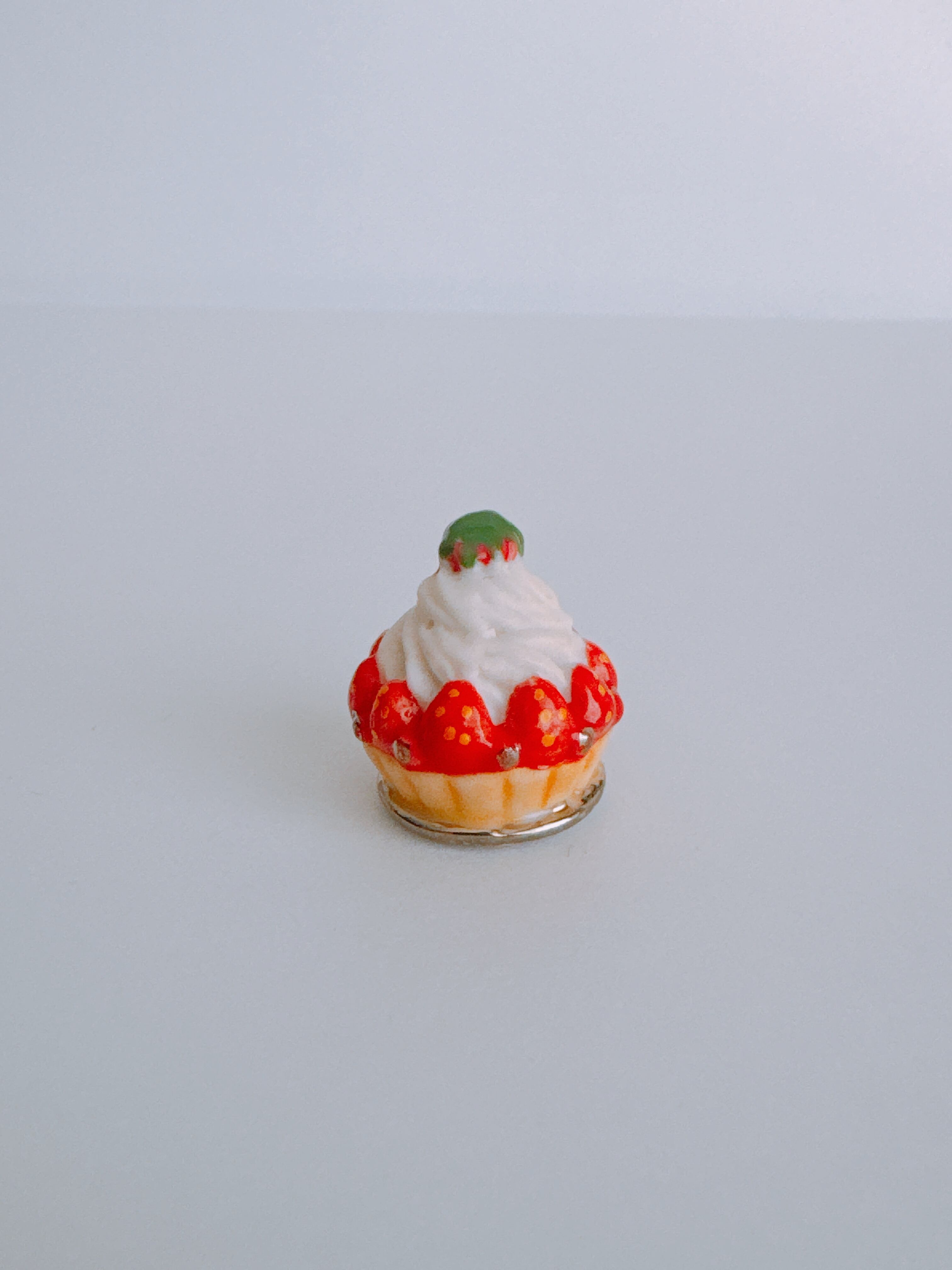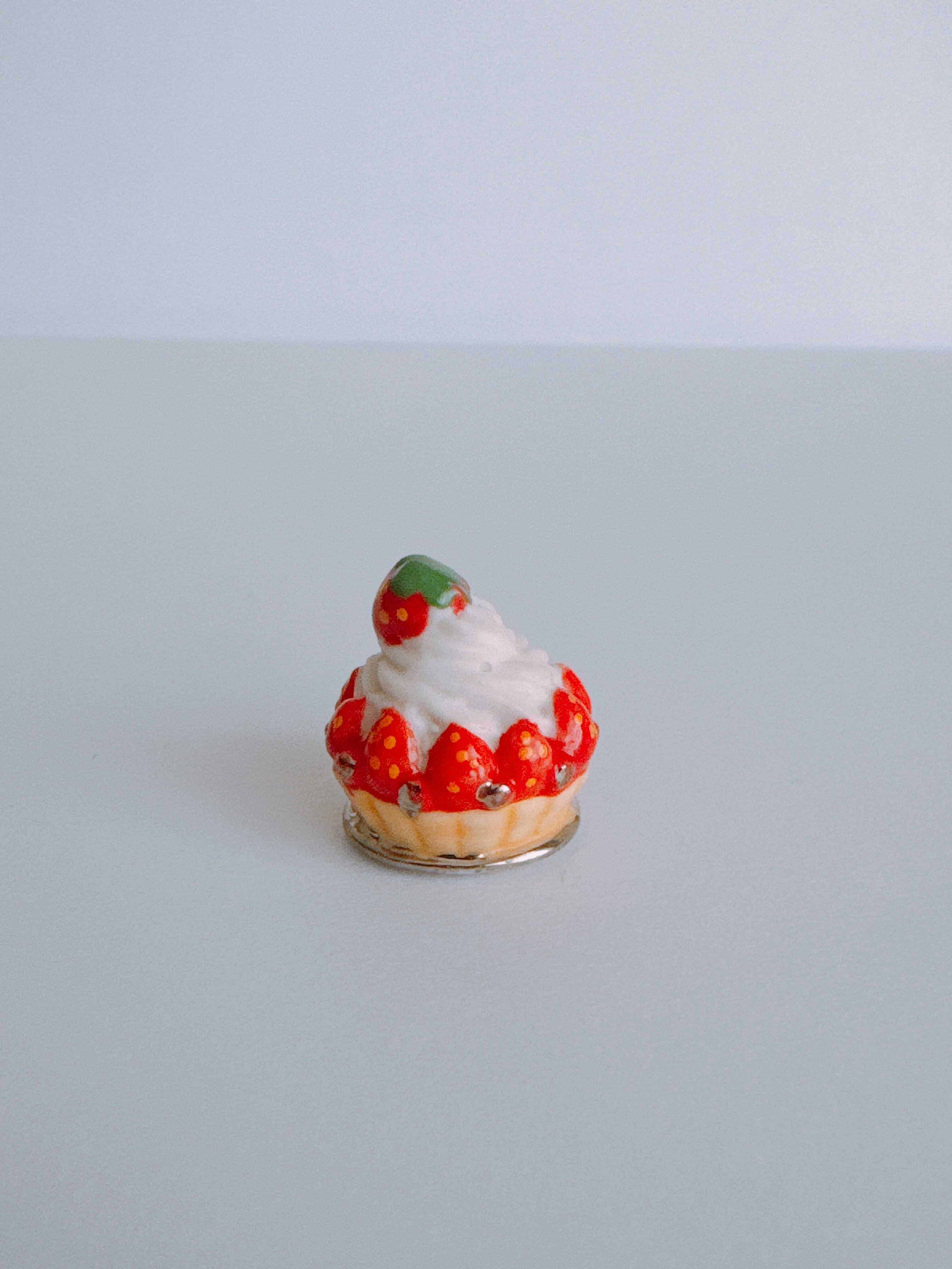 トップには葉っぱ付きのみずみずしい一粒の苺がのったケーキフェーヴ。