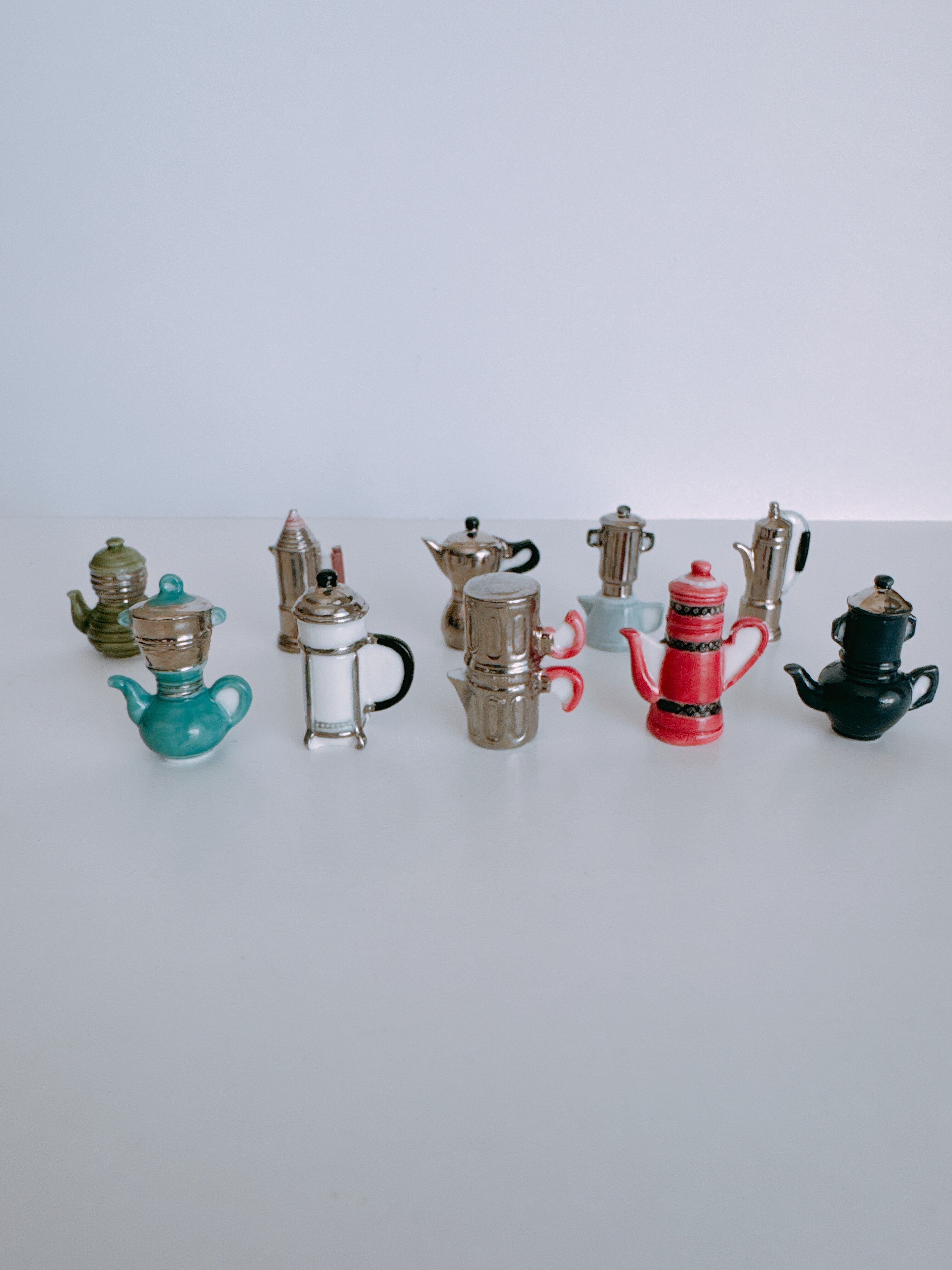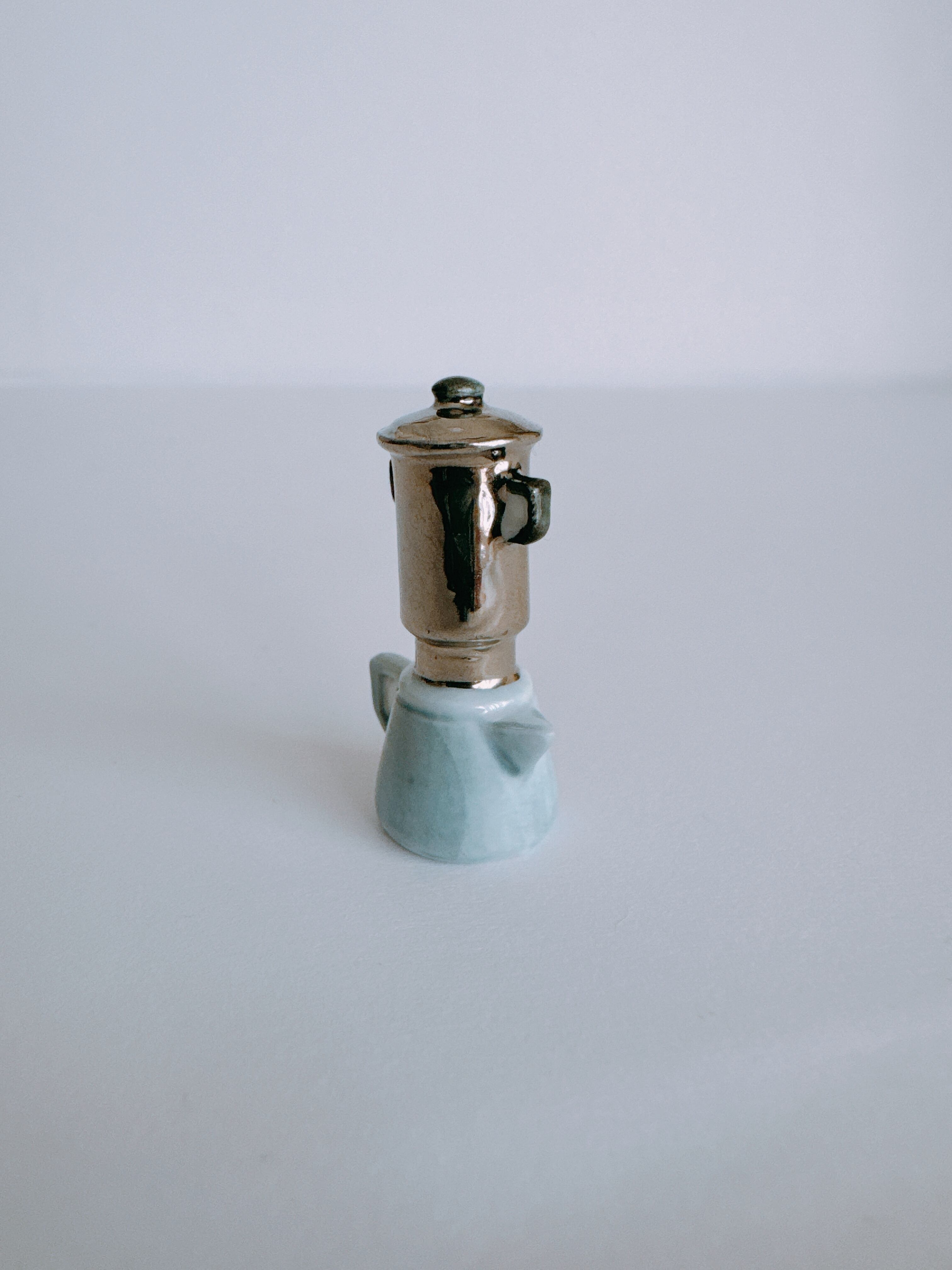 水色と銀色のカフェティエール