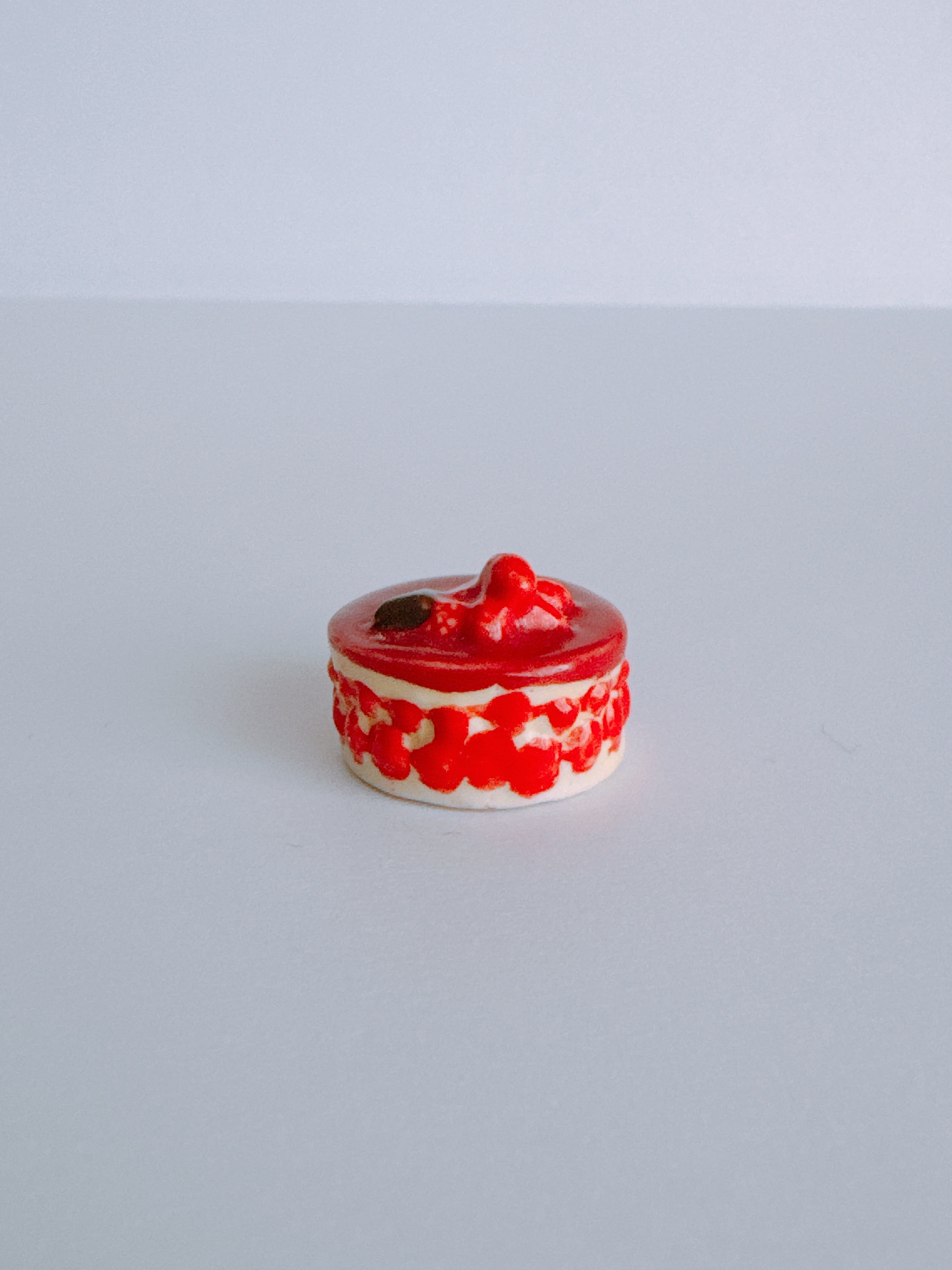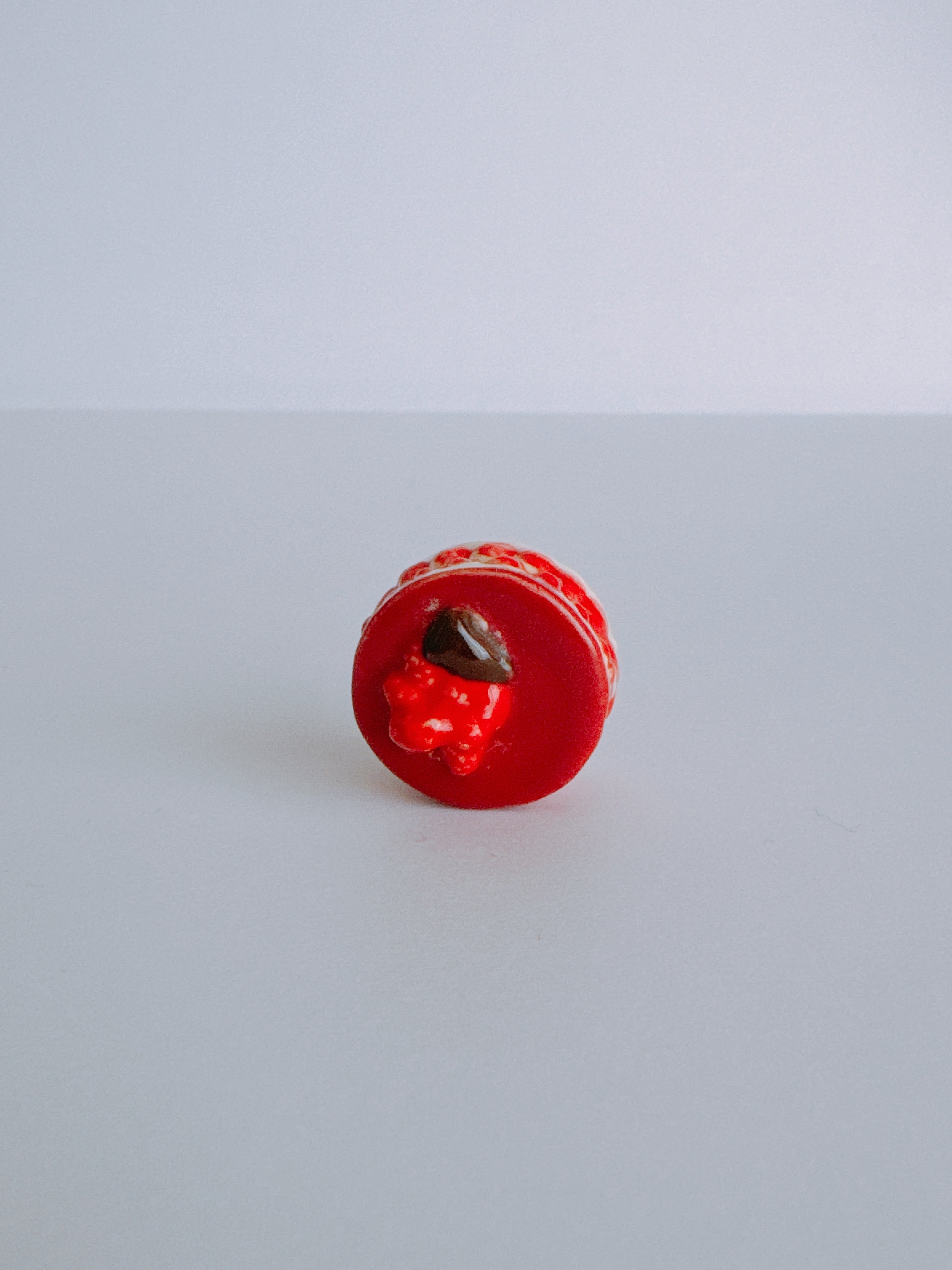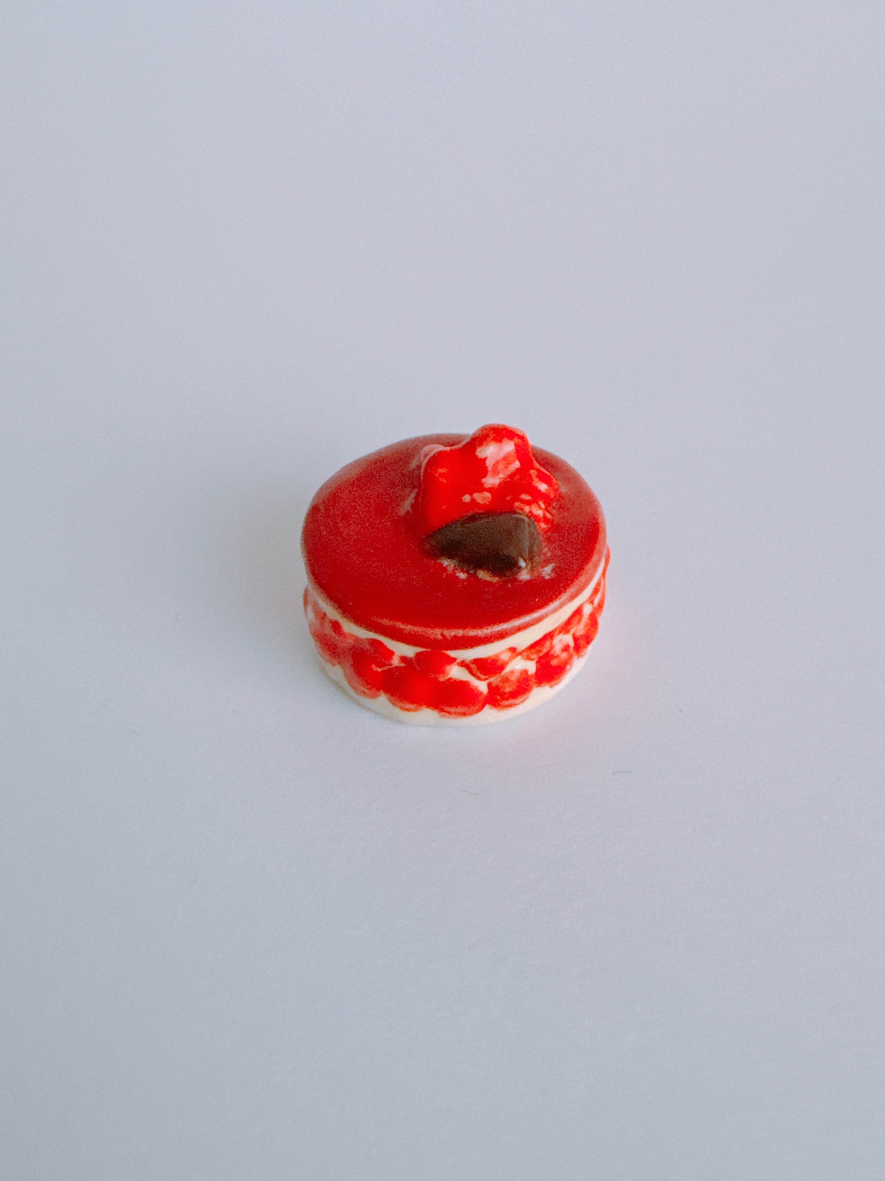 艶やかな赤が印象的な、フランボワーズのホールケーキ。表面のなめらかなグラサージュと、側面に覗く果実の層が美しく調和しているフェーヴです。