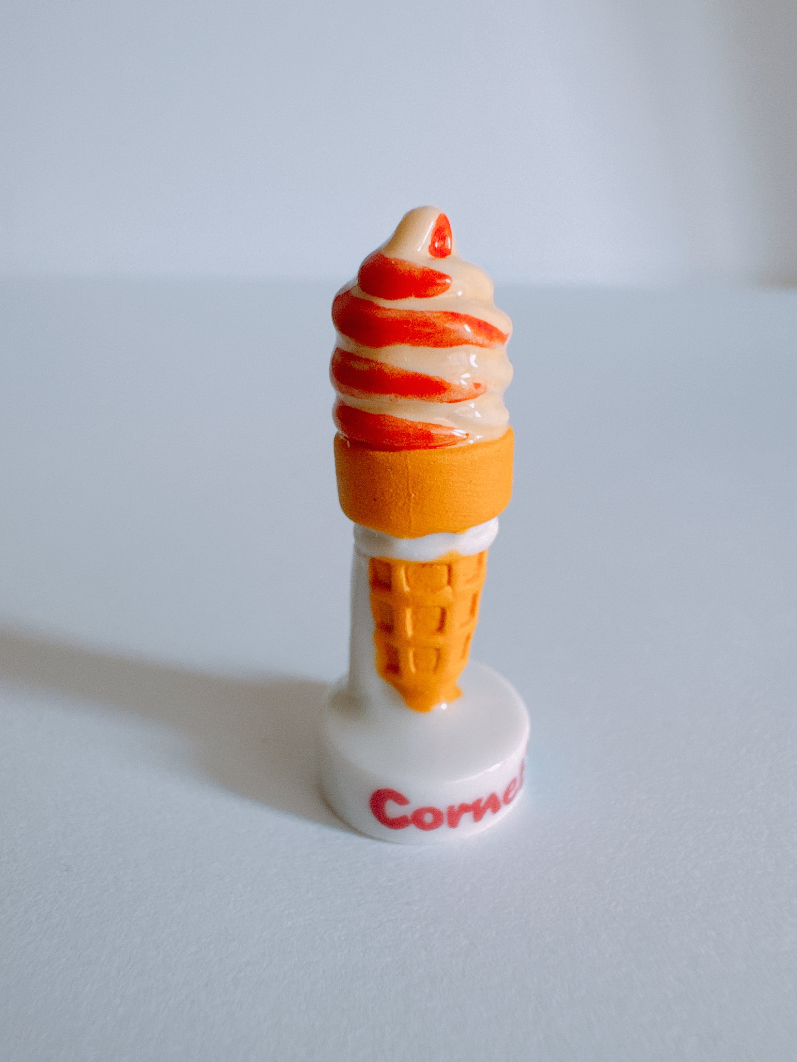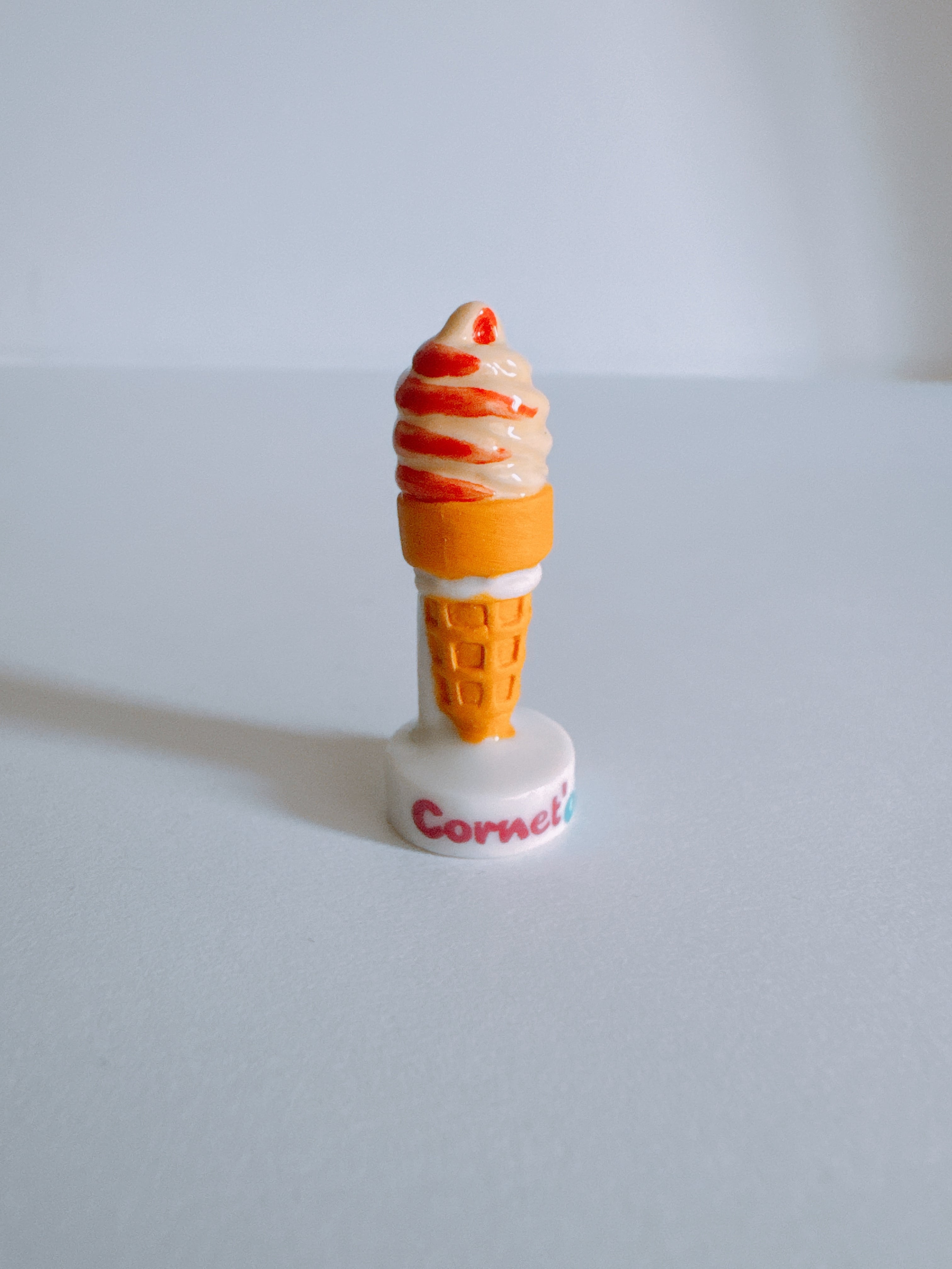 ワッフルコーンとベリー系×バニラのミックスソフトクリームを表現したフェーヴ。