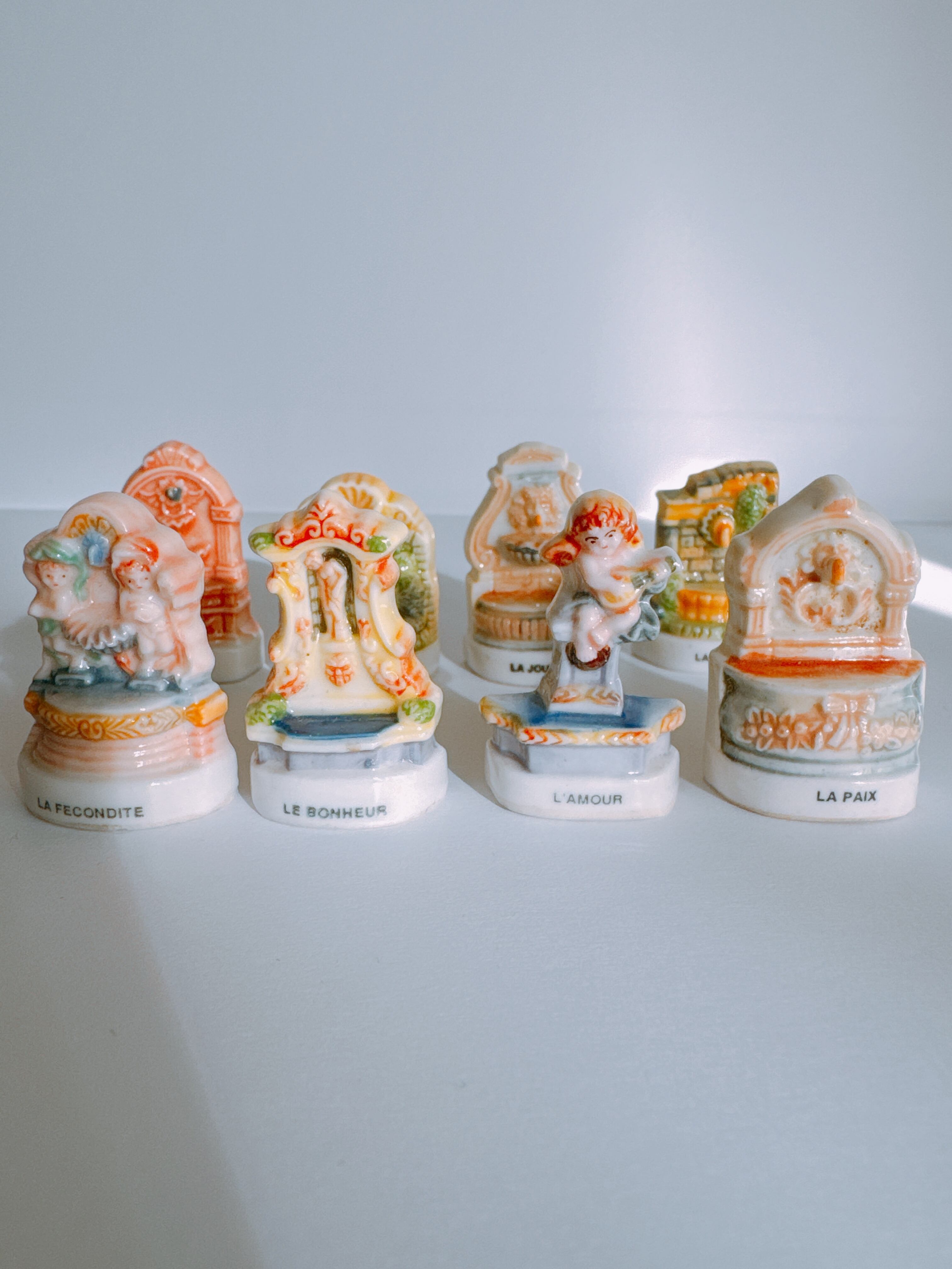 愛を象徴する天使が佇む、小さく詩的なフェーヴ。やわらかな彩色と静かな表情が美しく、泉のシリーズの中でも特にロマンティックな一体です。2002年製。