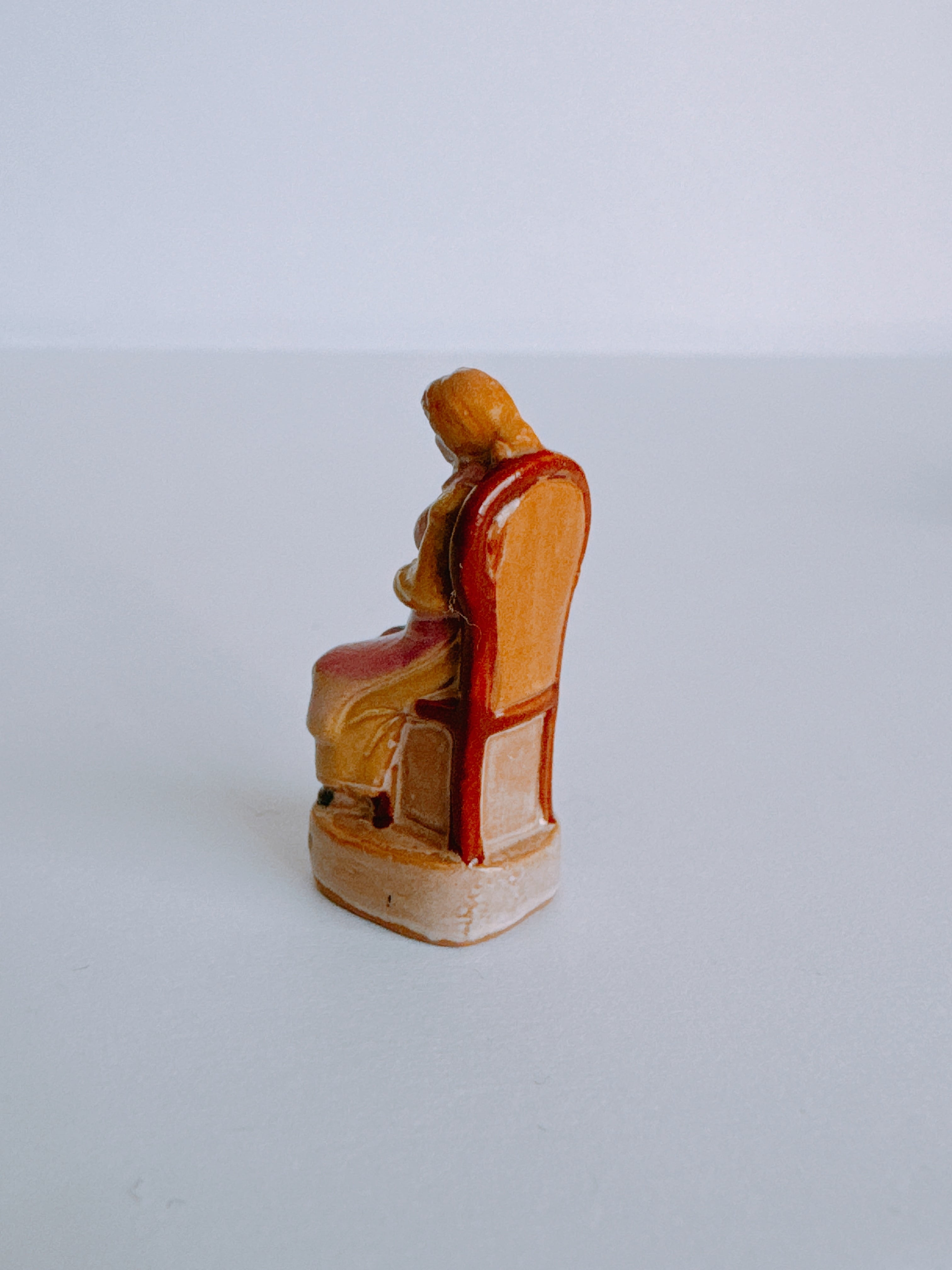 糸を紡ぐ女性の穏やかな姿を表現したフェーヴ。昔の農村の暮らしや手仕事の温もりが感じられます。優しい色合いと素朴な表情が魅力の一体です。