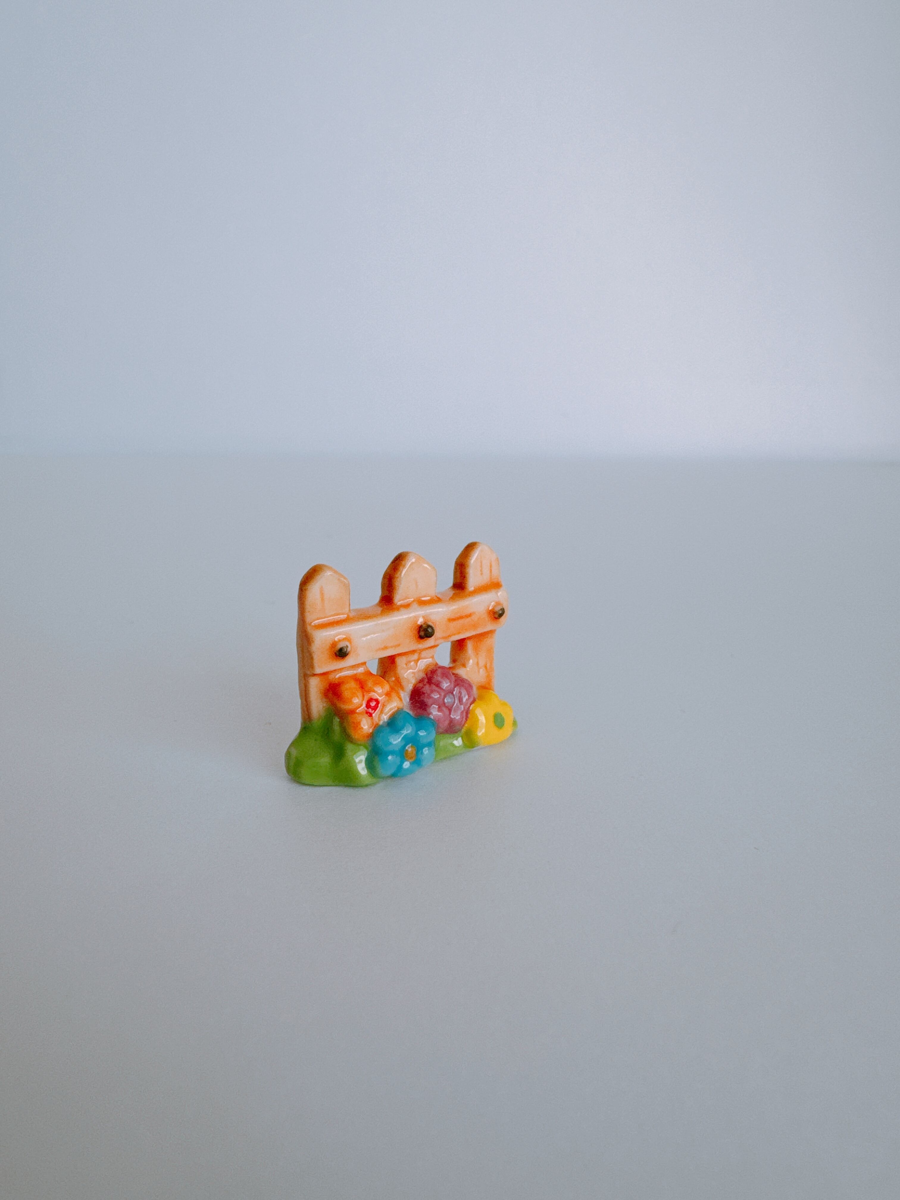 色とりどりの花が咲く、小さな木のフェンス。