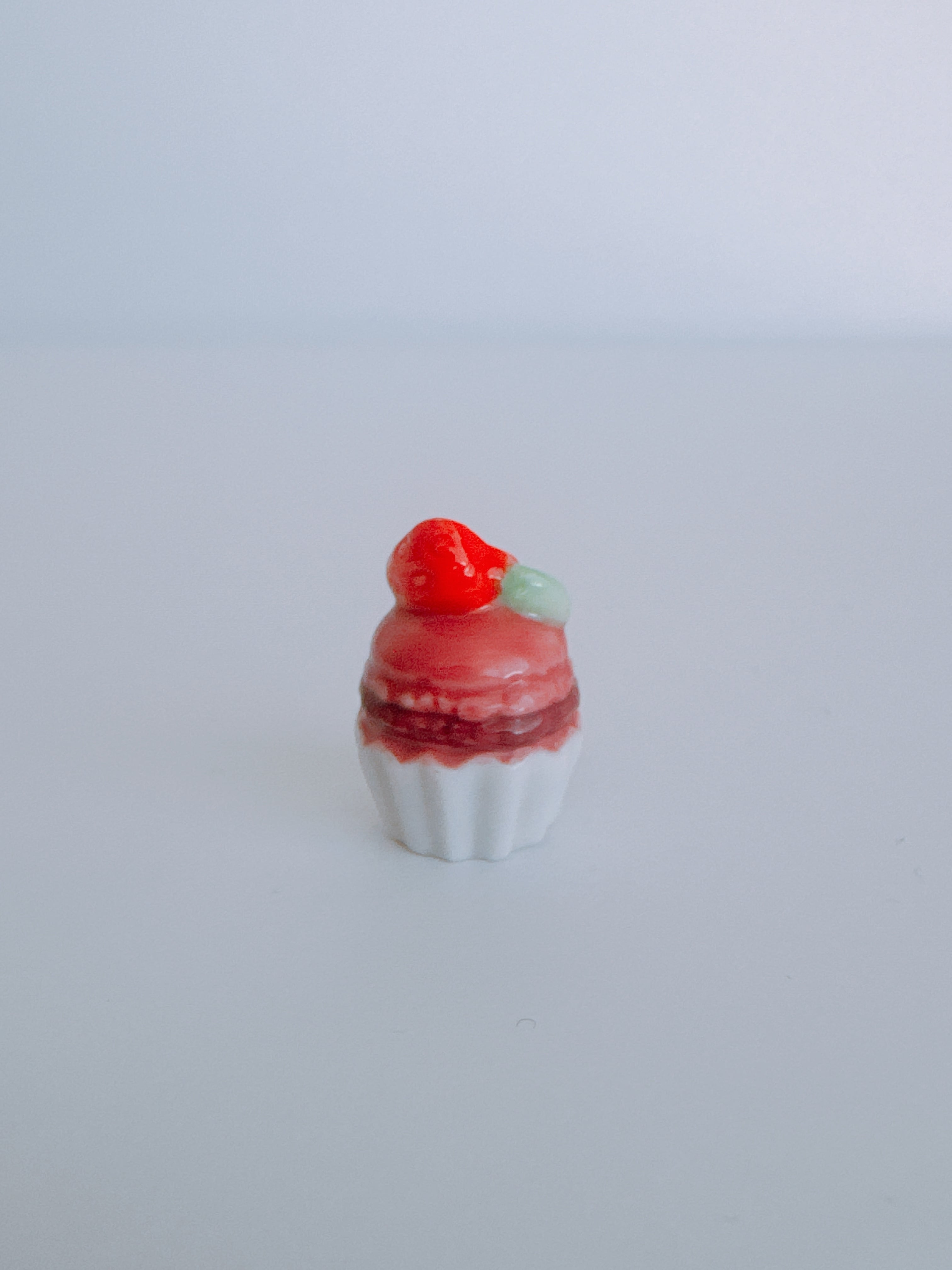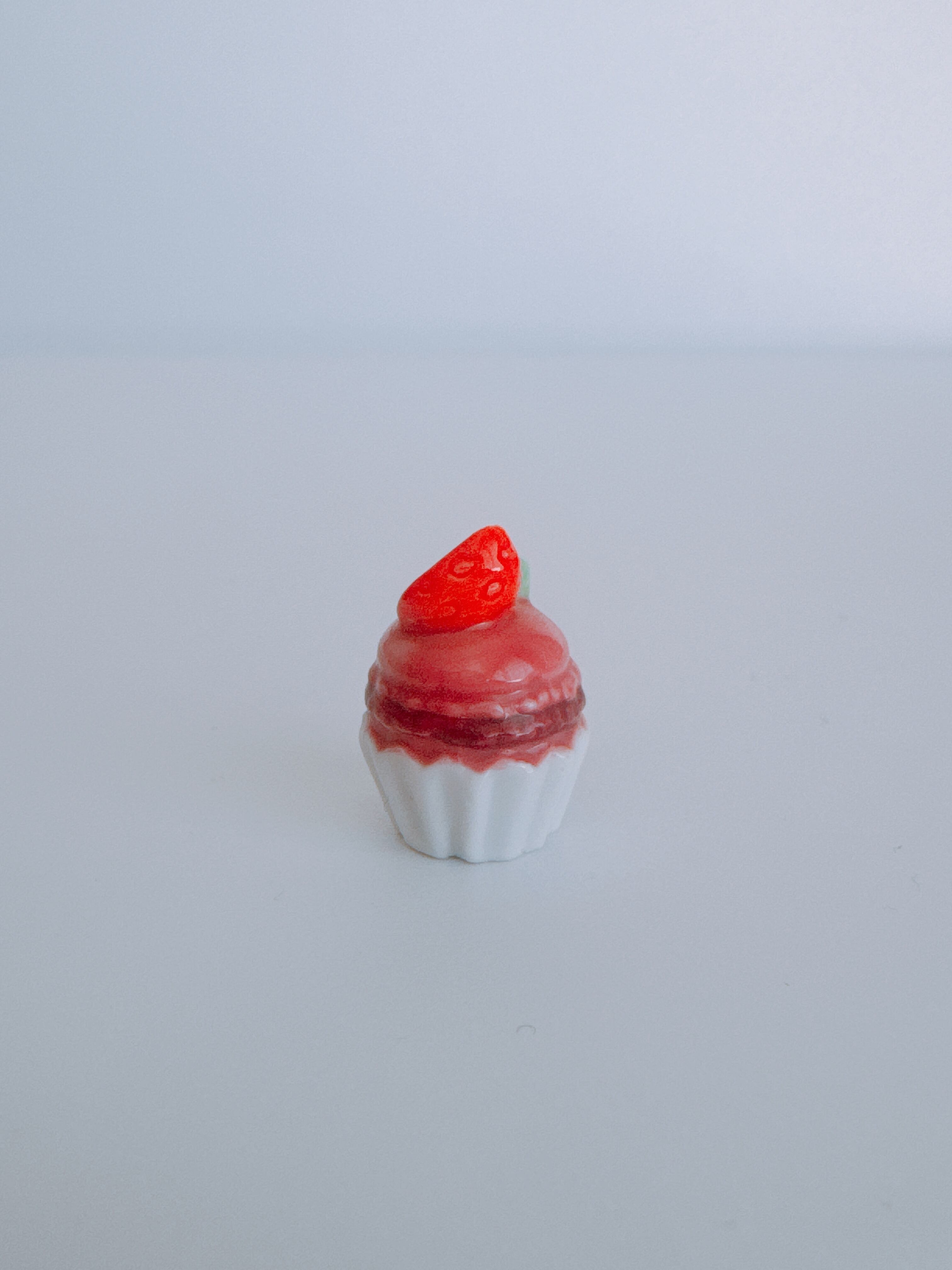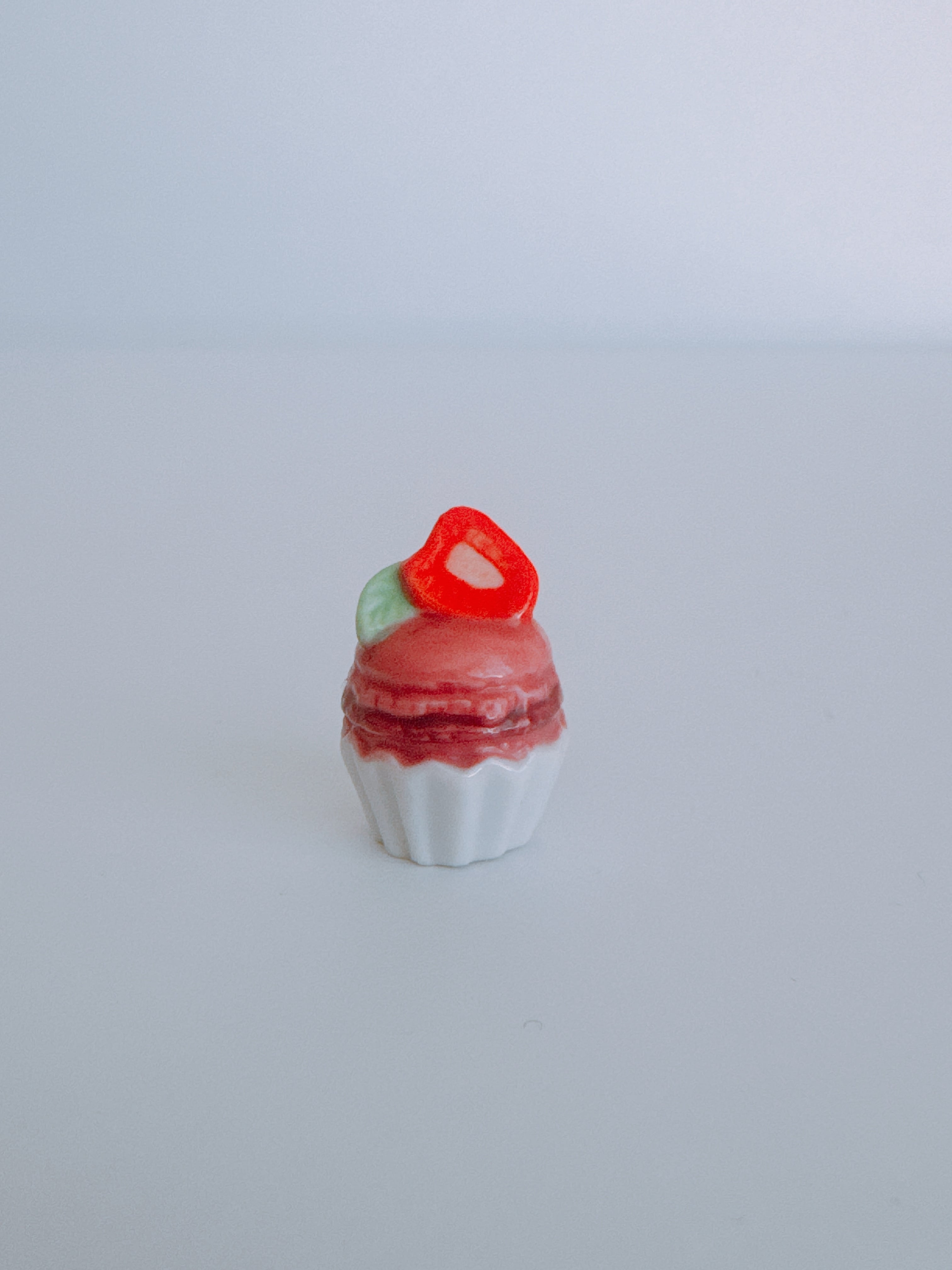 トップにはカットされた苺が添えられ、みずみずしさと華やかさを感じさせます。