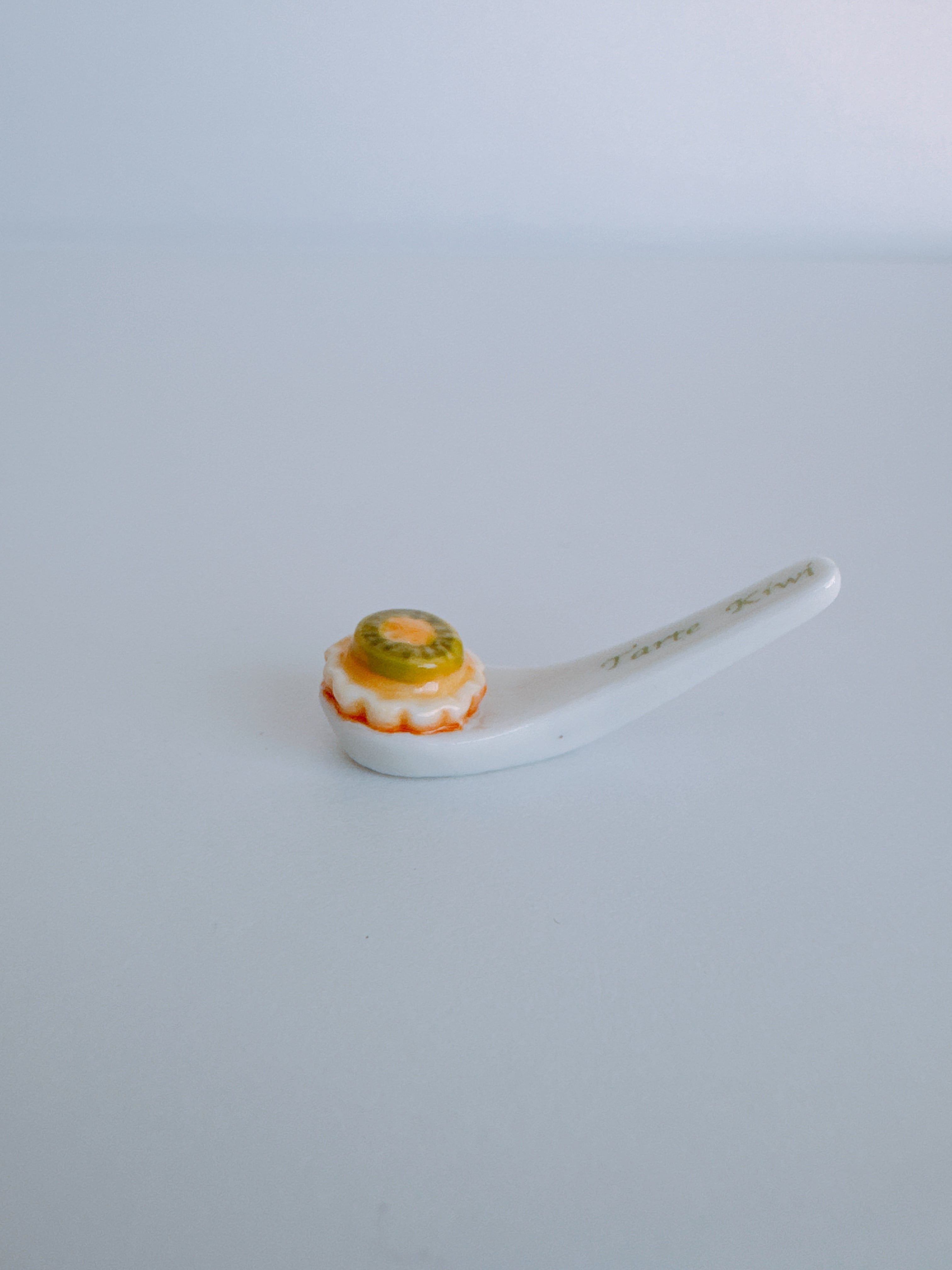 スプーンにのったキウイのタルト一個。