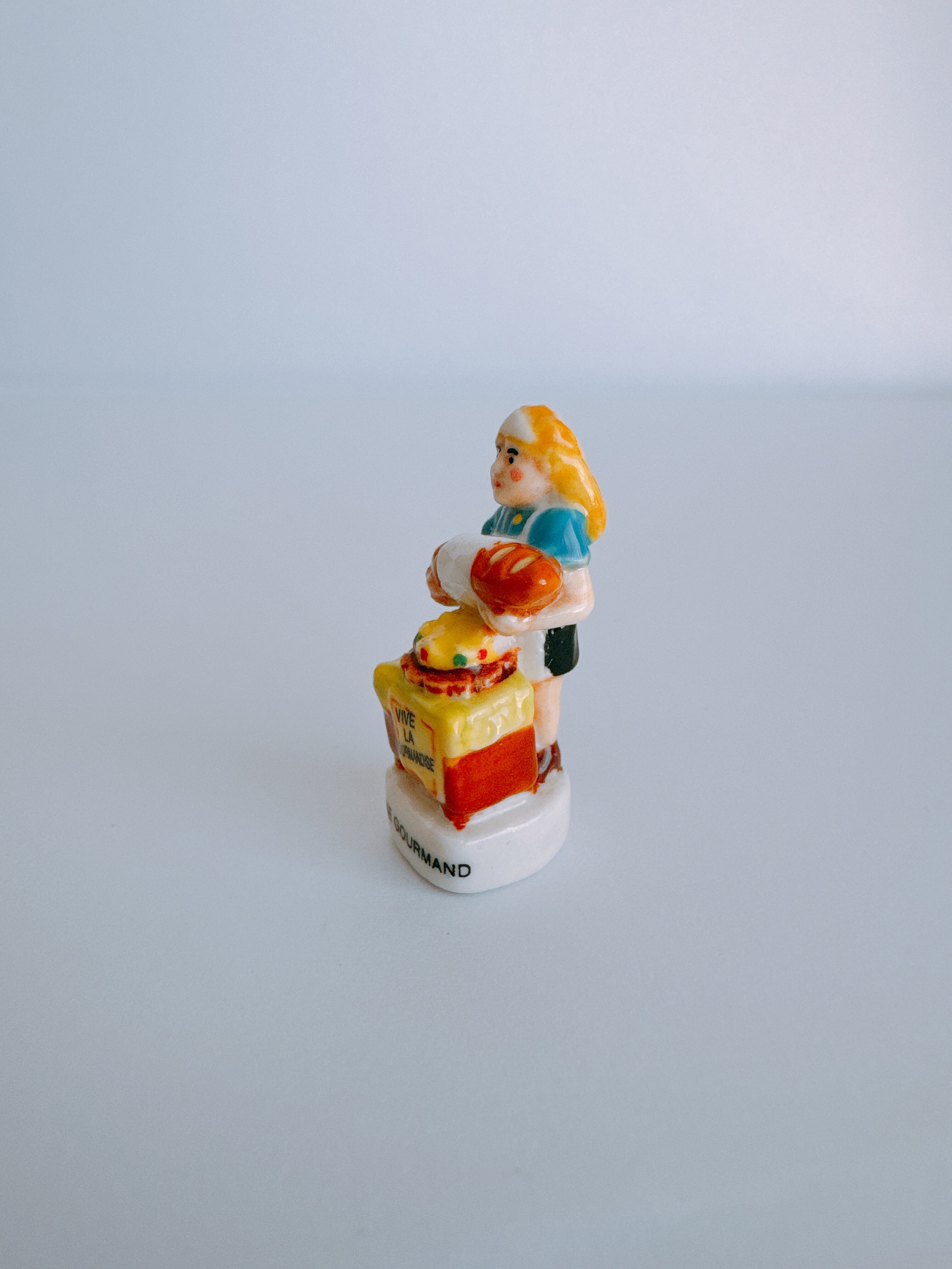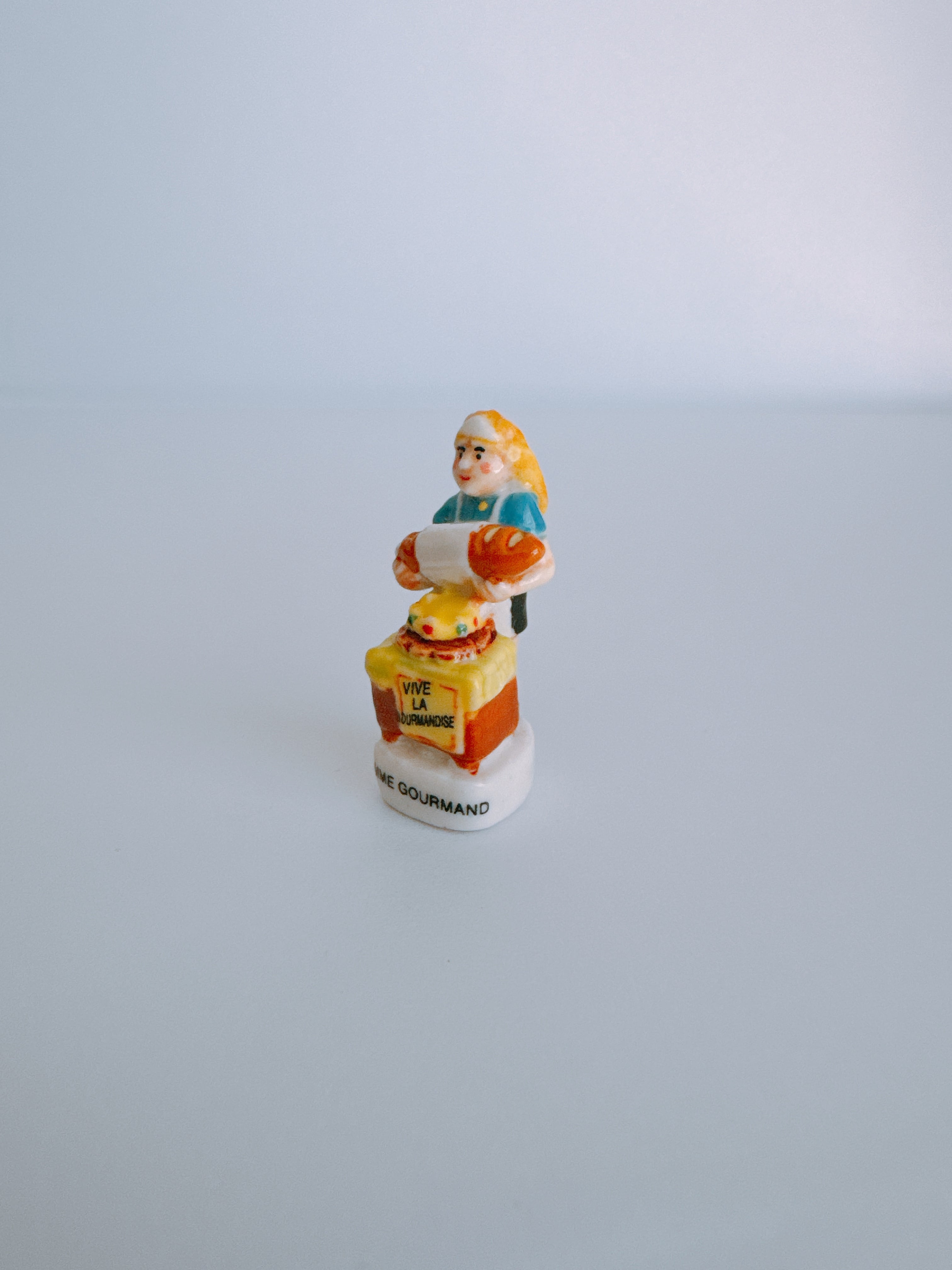 パンとガレットに囲まれた、幸せなひとときを描いたフェーヴ。「Vive la gourmandise(美味しいもの万歳)」の言葉通り、食べる楽しさが伝わる一体です。