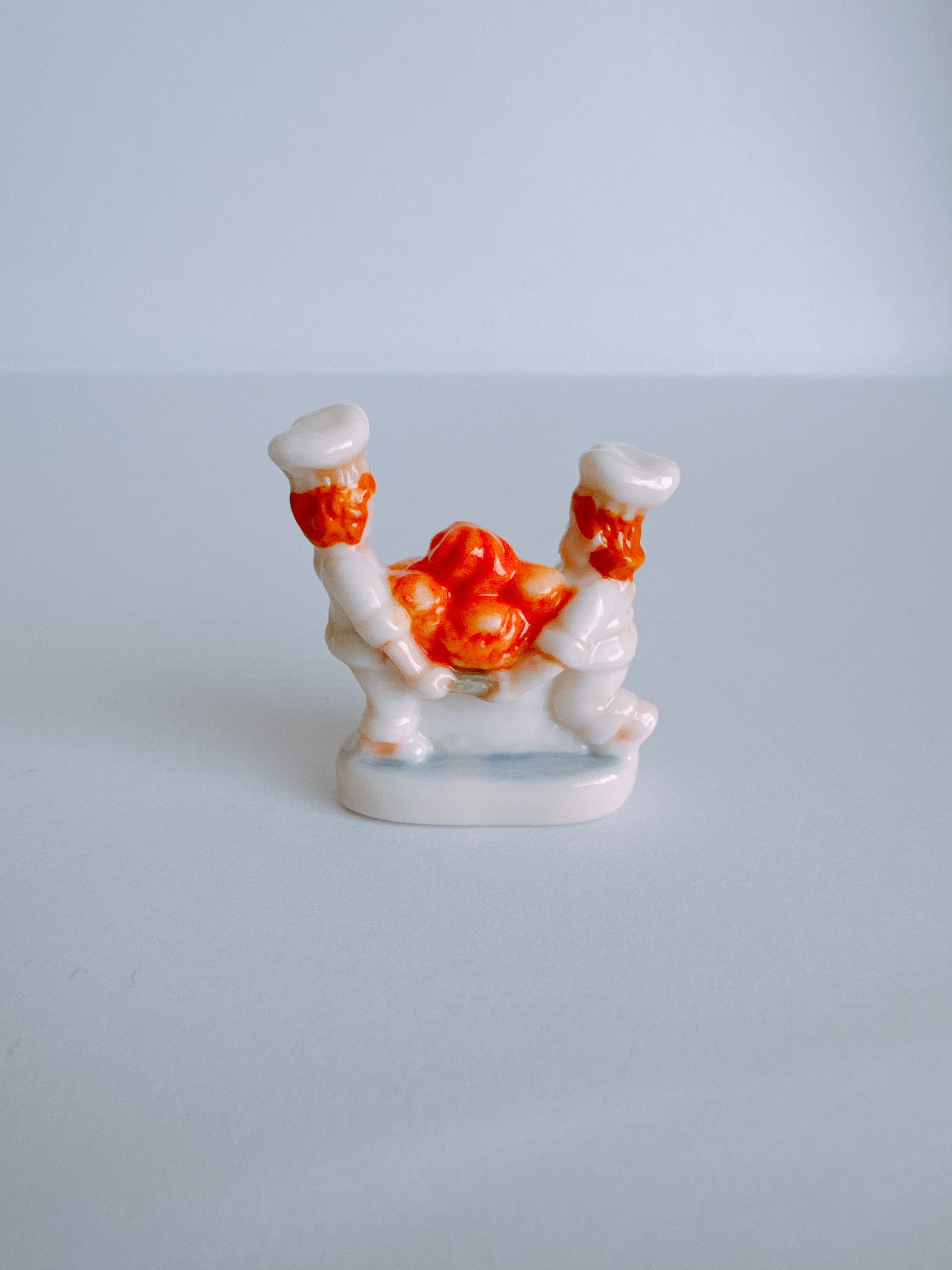 お菓子作りの工程を表情豊かに描いた、可愛らしいフェーヴです。