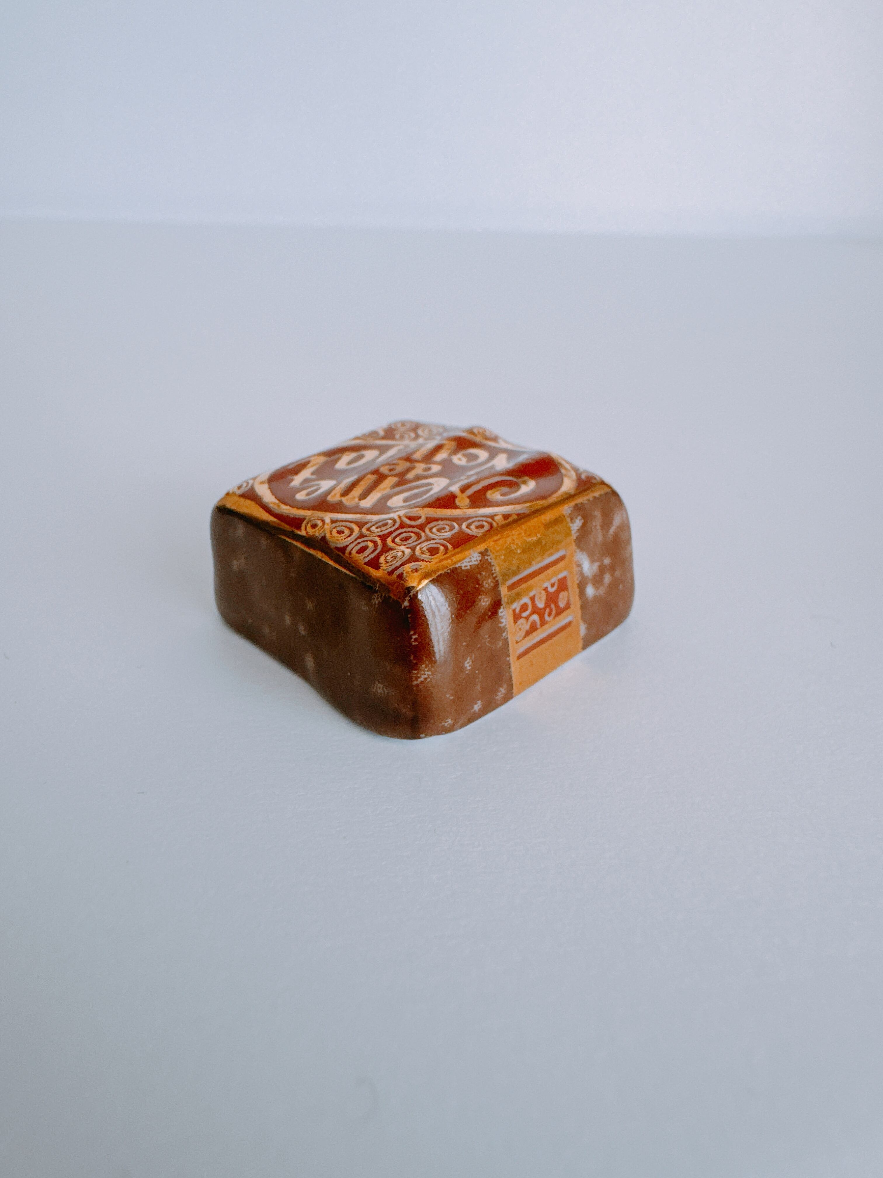 金色の包装は本物そっくり。細部まで再現されたヌガーのフェーヴです。2007年製。