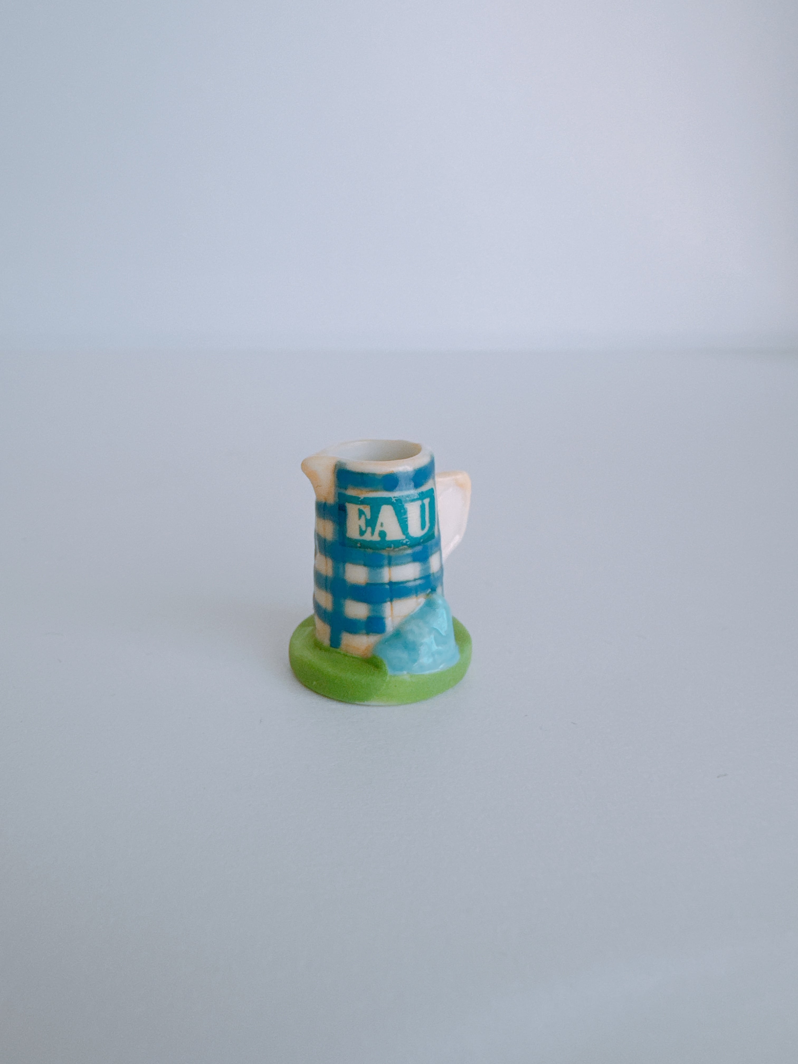 “EAU( お水) ”の文字が印象的なピッチャーのフェーヴ。