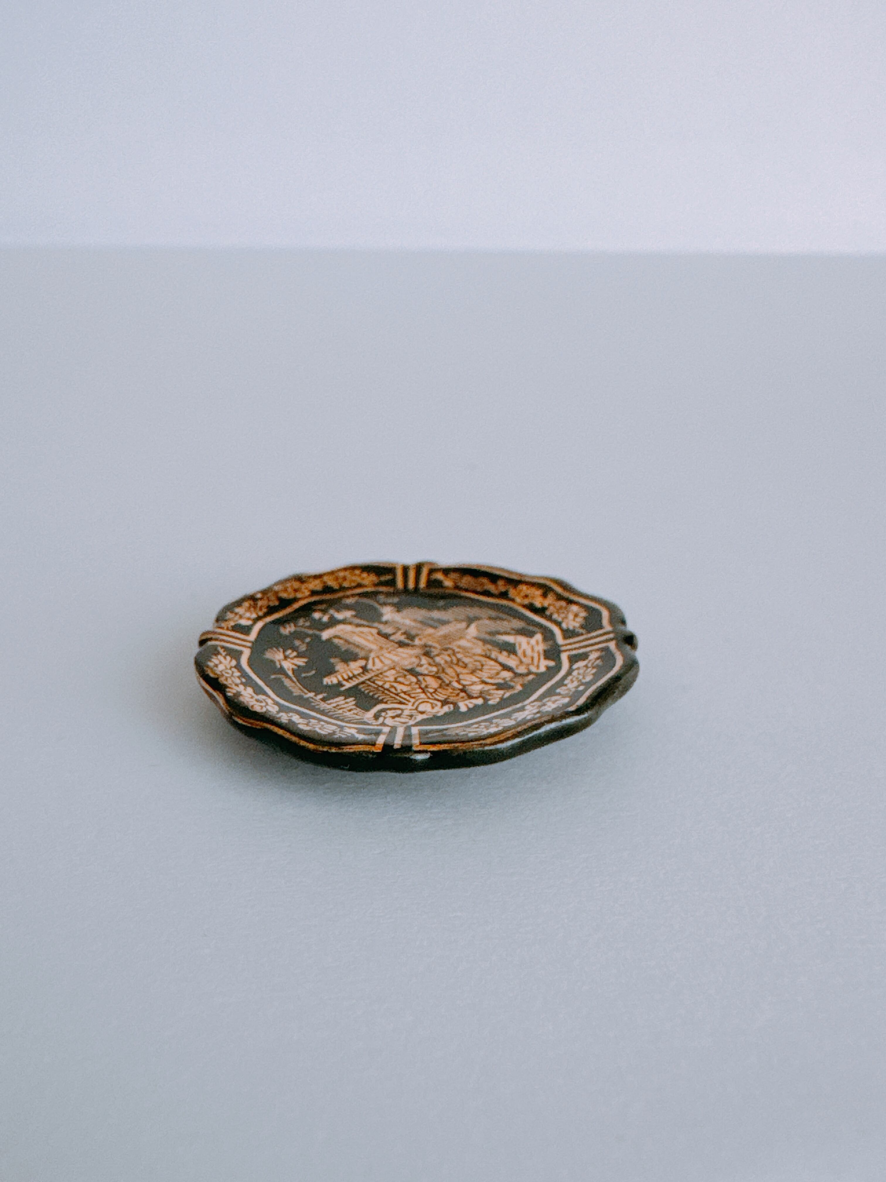 繊細な金彩で描かれた人物と風景のフェーヴ。
