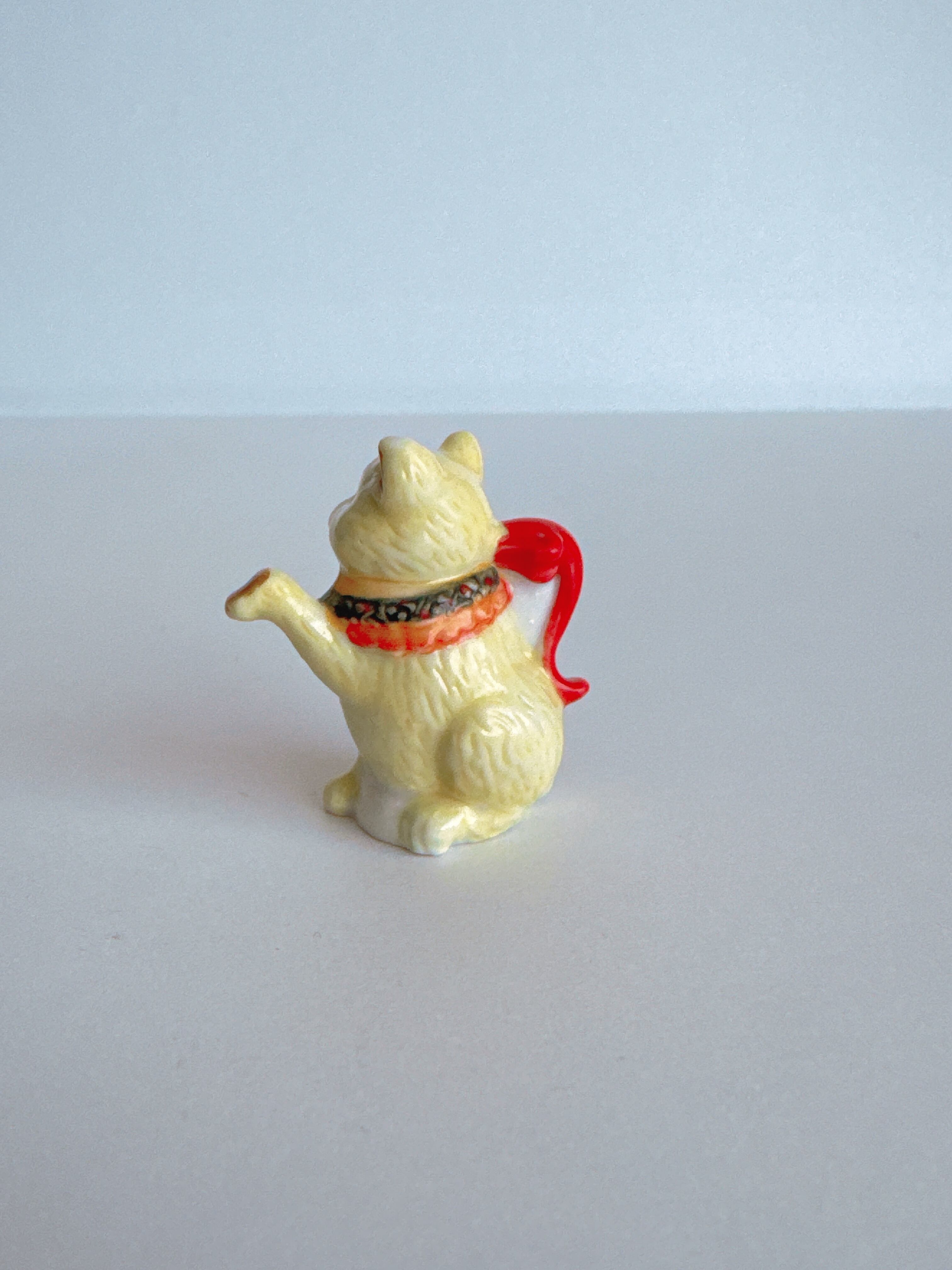 片手をそっとあげた仕草が印象的な、猫のティーポットフェーヴ。