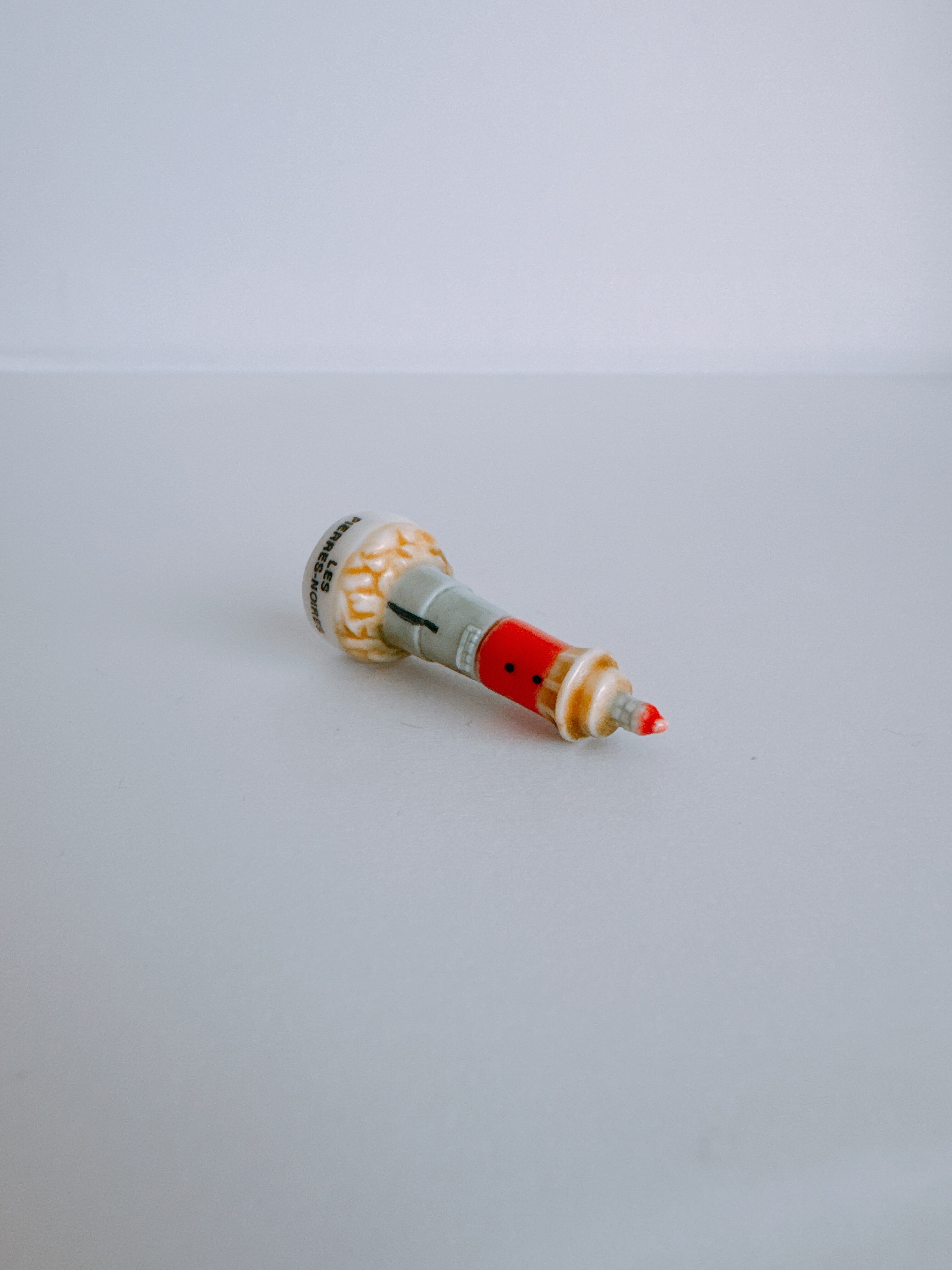 赤のアクセントが印象的で、小さな中に力強さを感じる一体です。