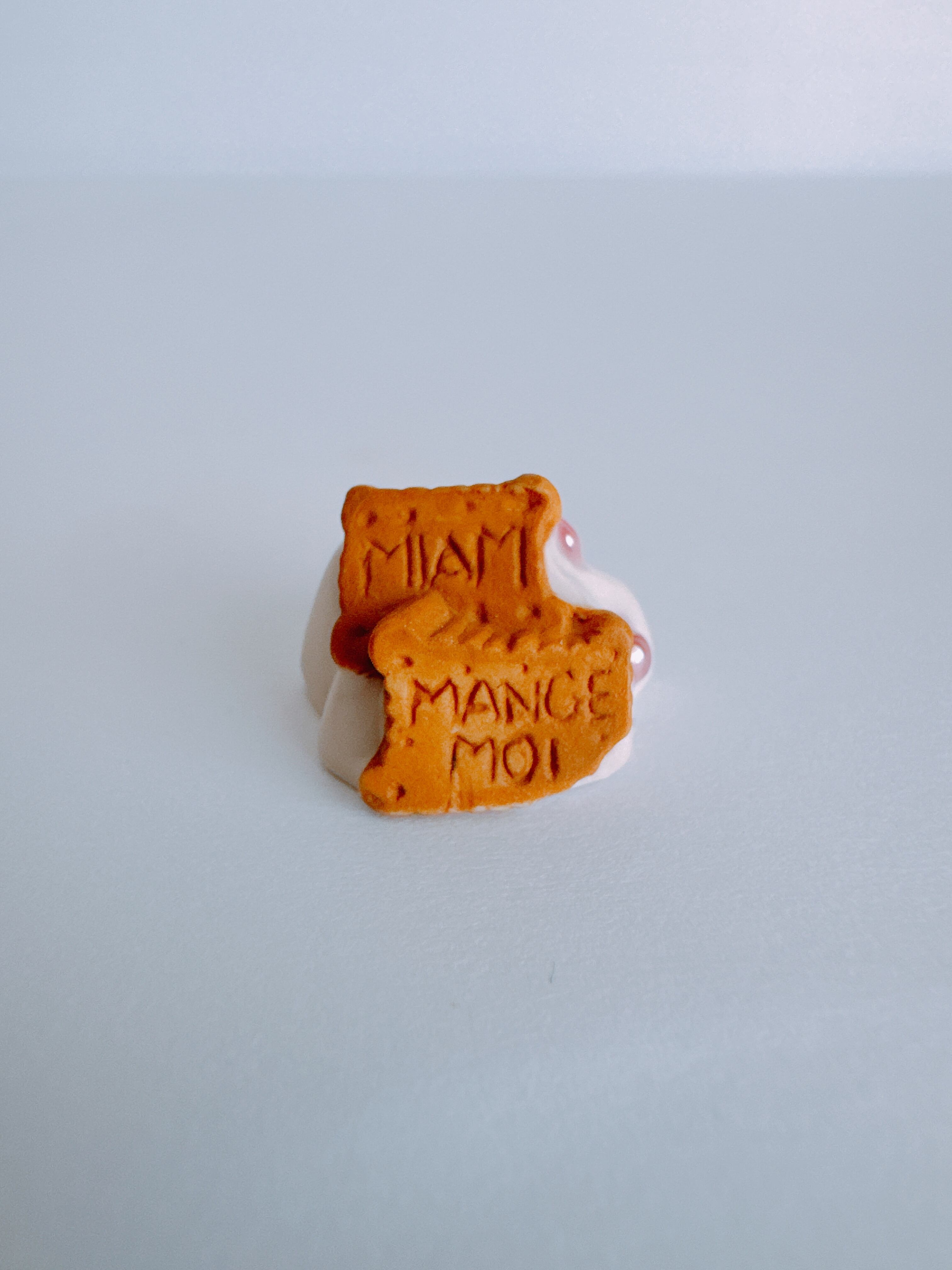 ビスケットには「食べて!」という遊び心のあるメッセージ。