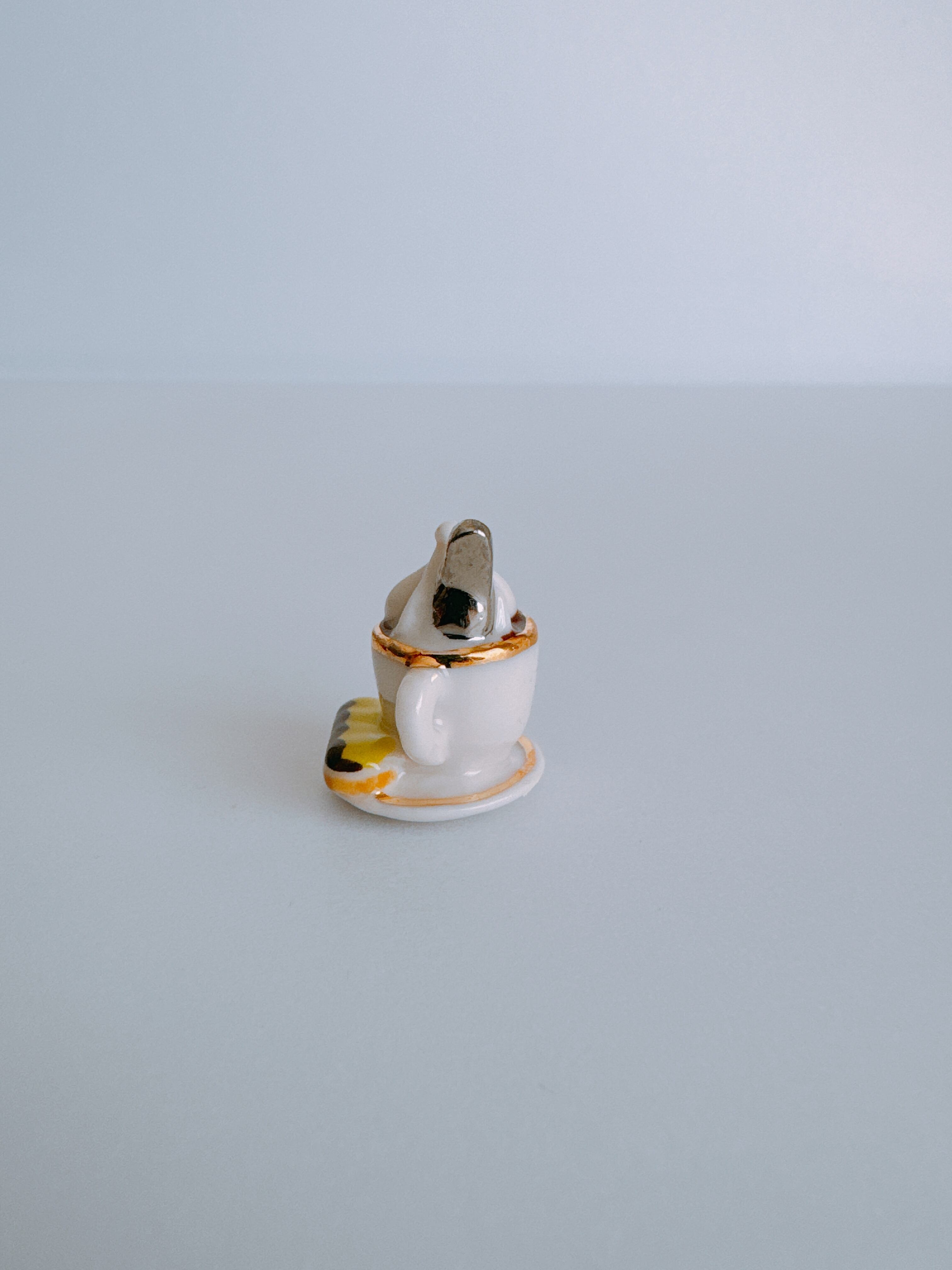 ふんわりとしたクリームをのせたウインナーコーヒーにエクレアを添えた愛らしい一体。