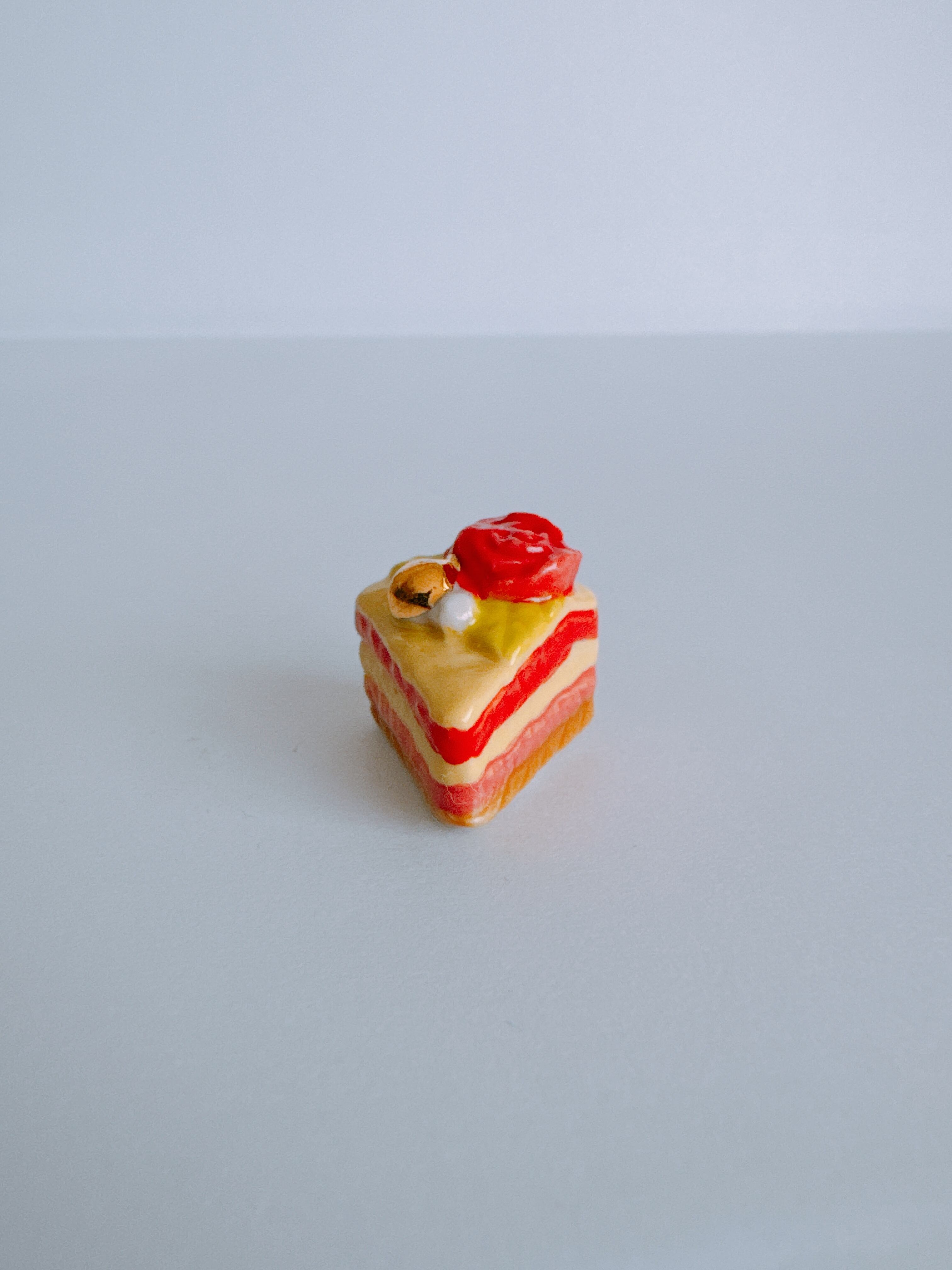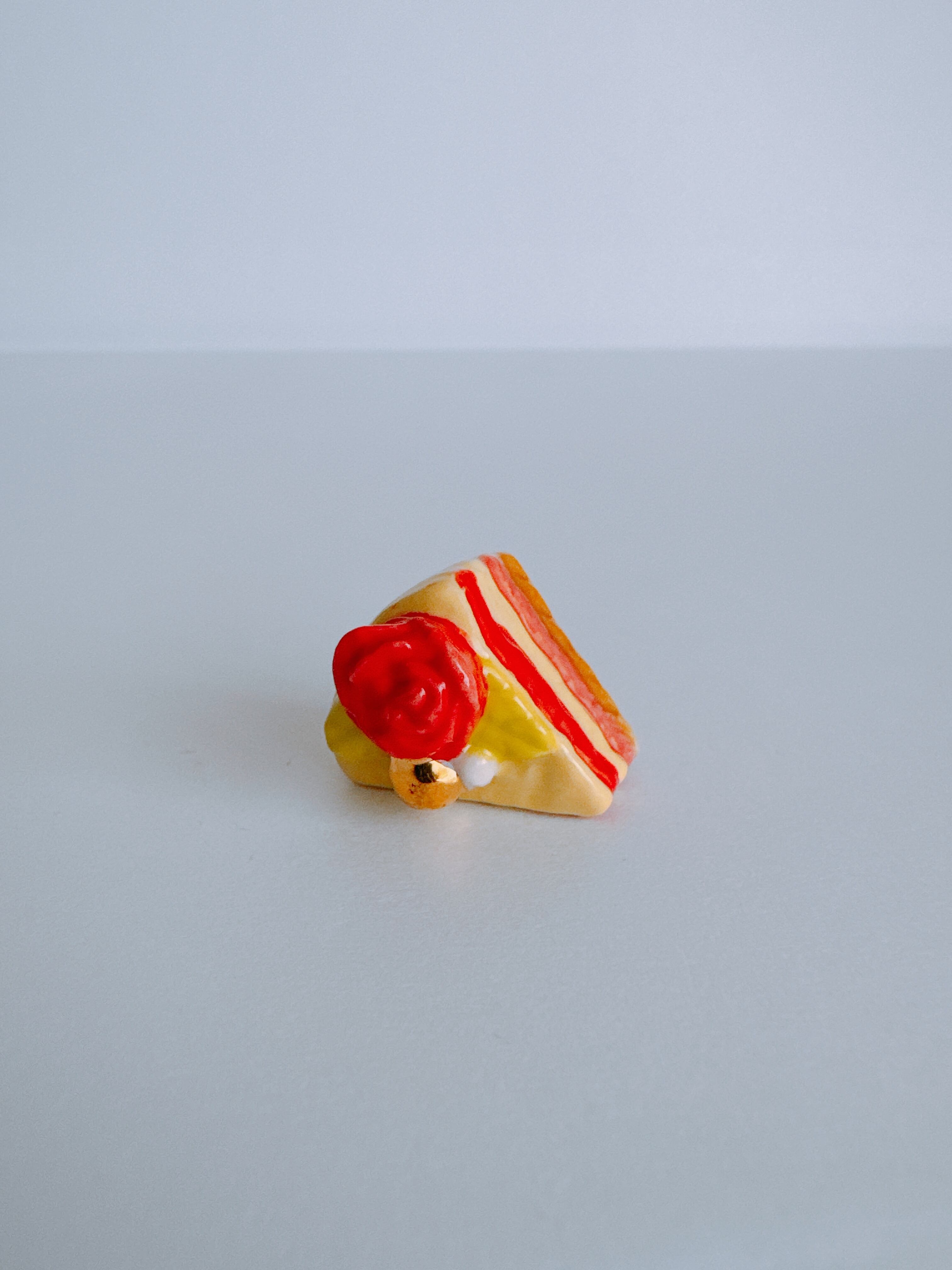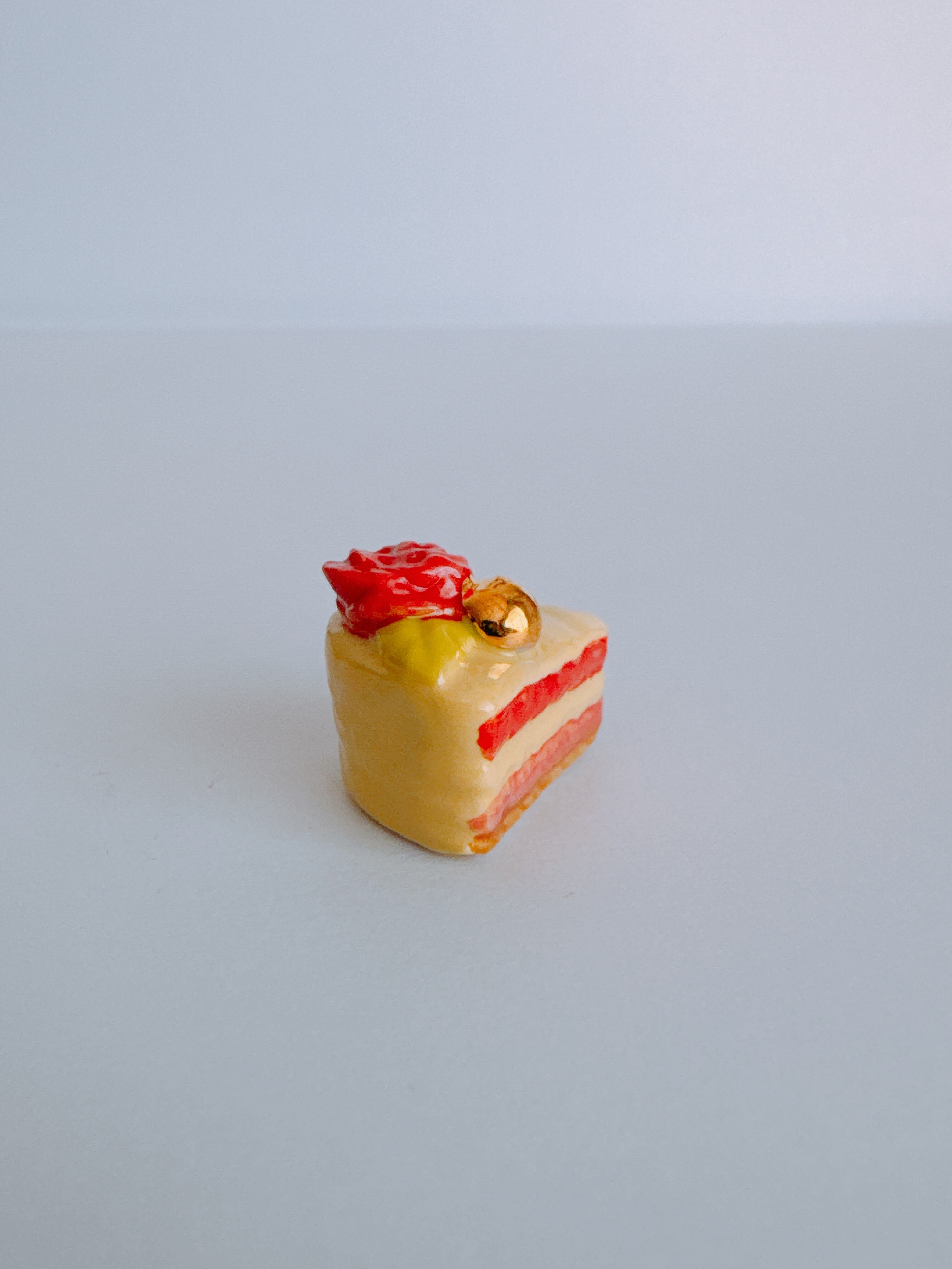 やわらかなピスタチオカラーに、鮮やかないちごの層を重ねた華やかなケーキ。