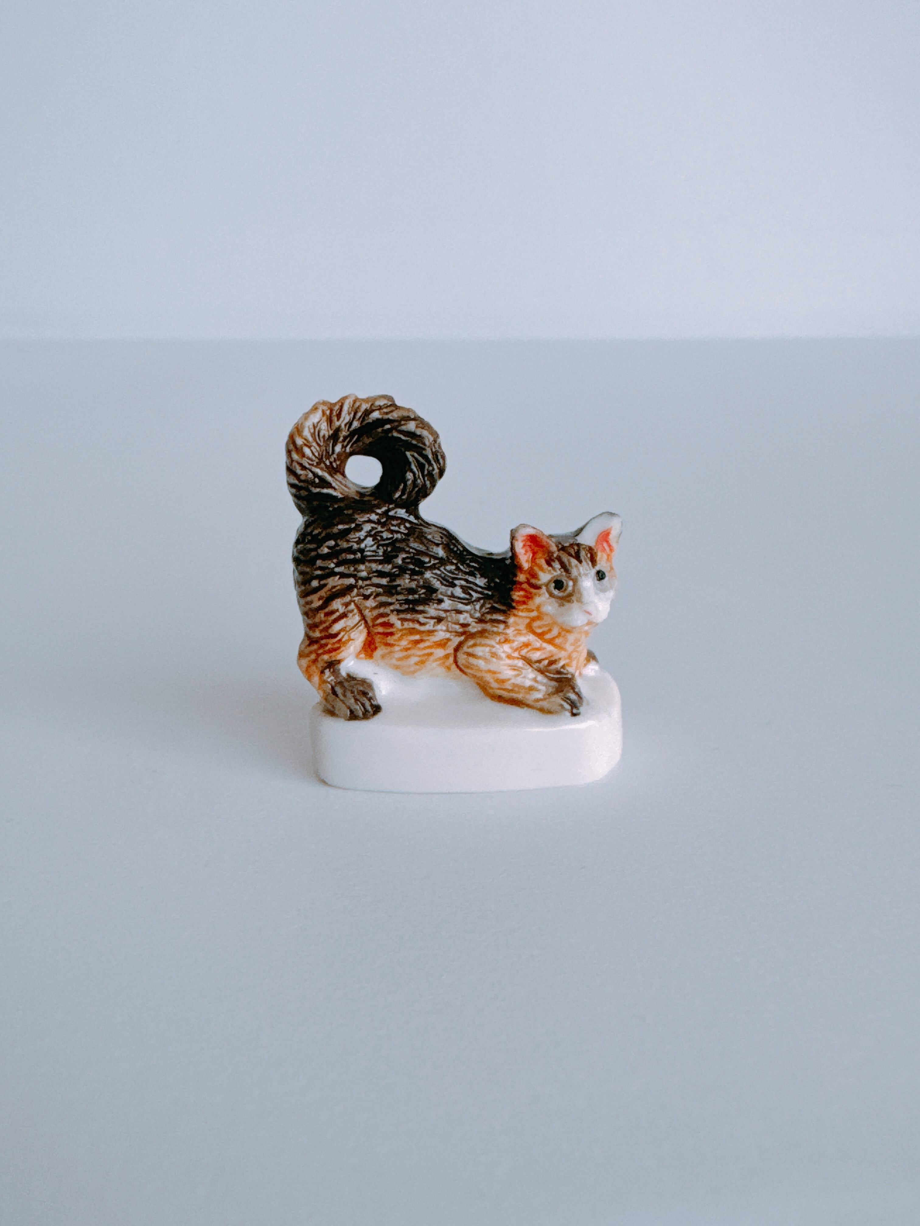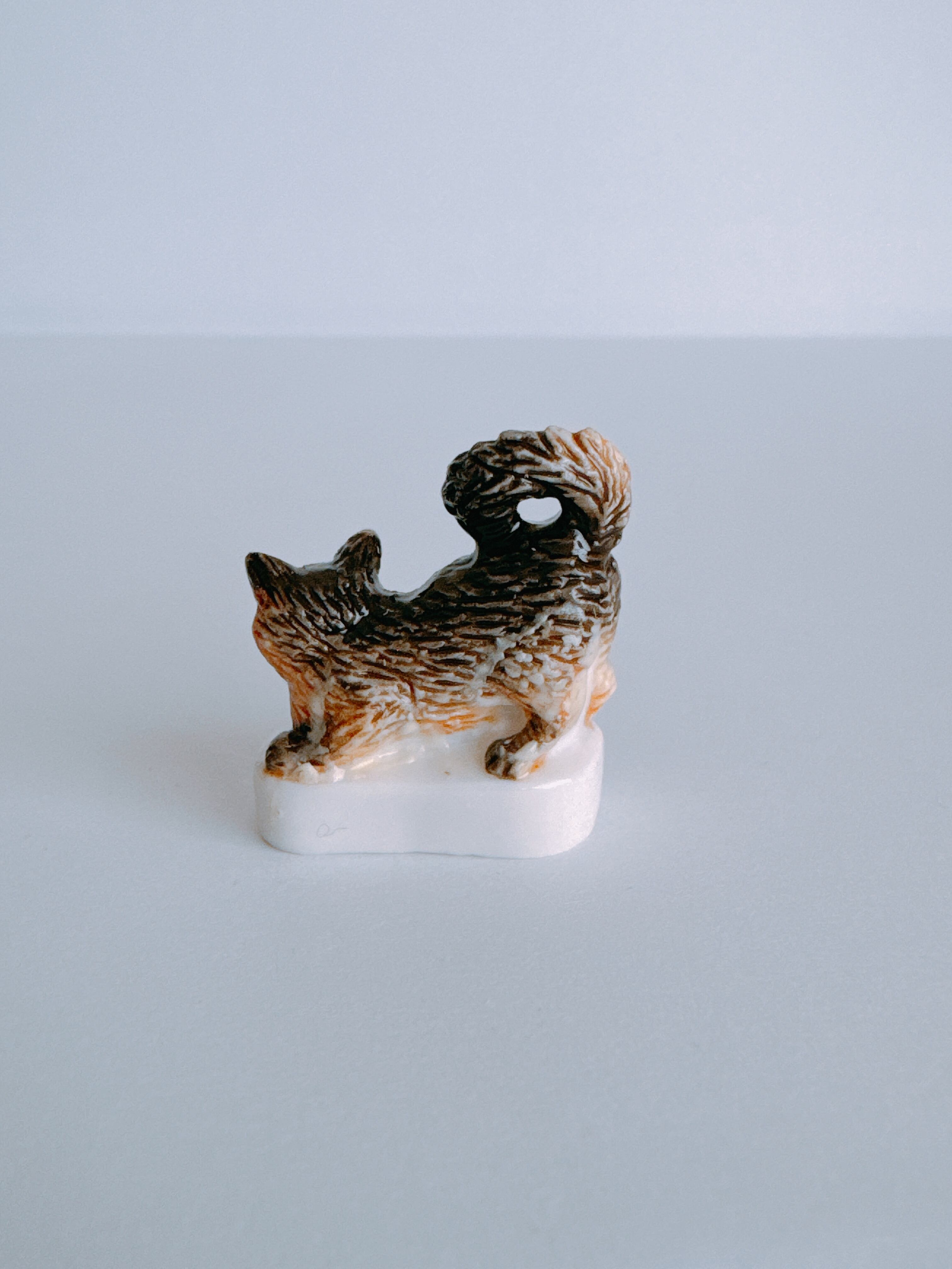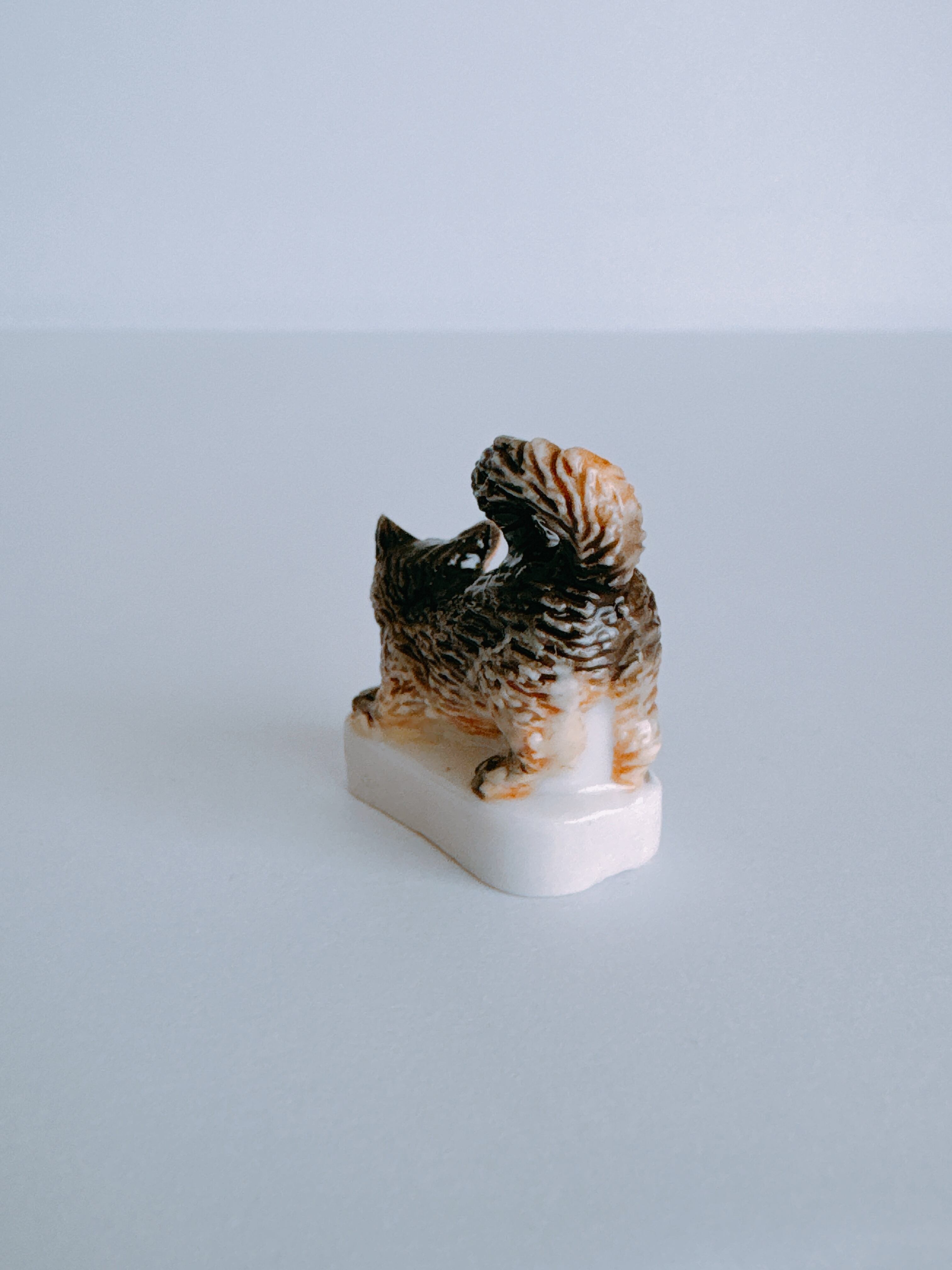 丸く巻いた尾が、軽やかなリズムを添えます。