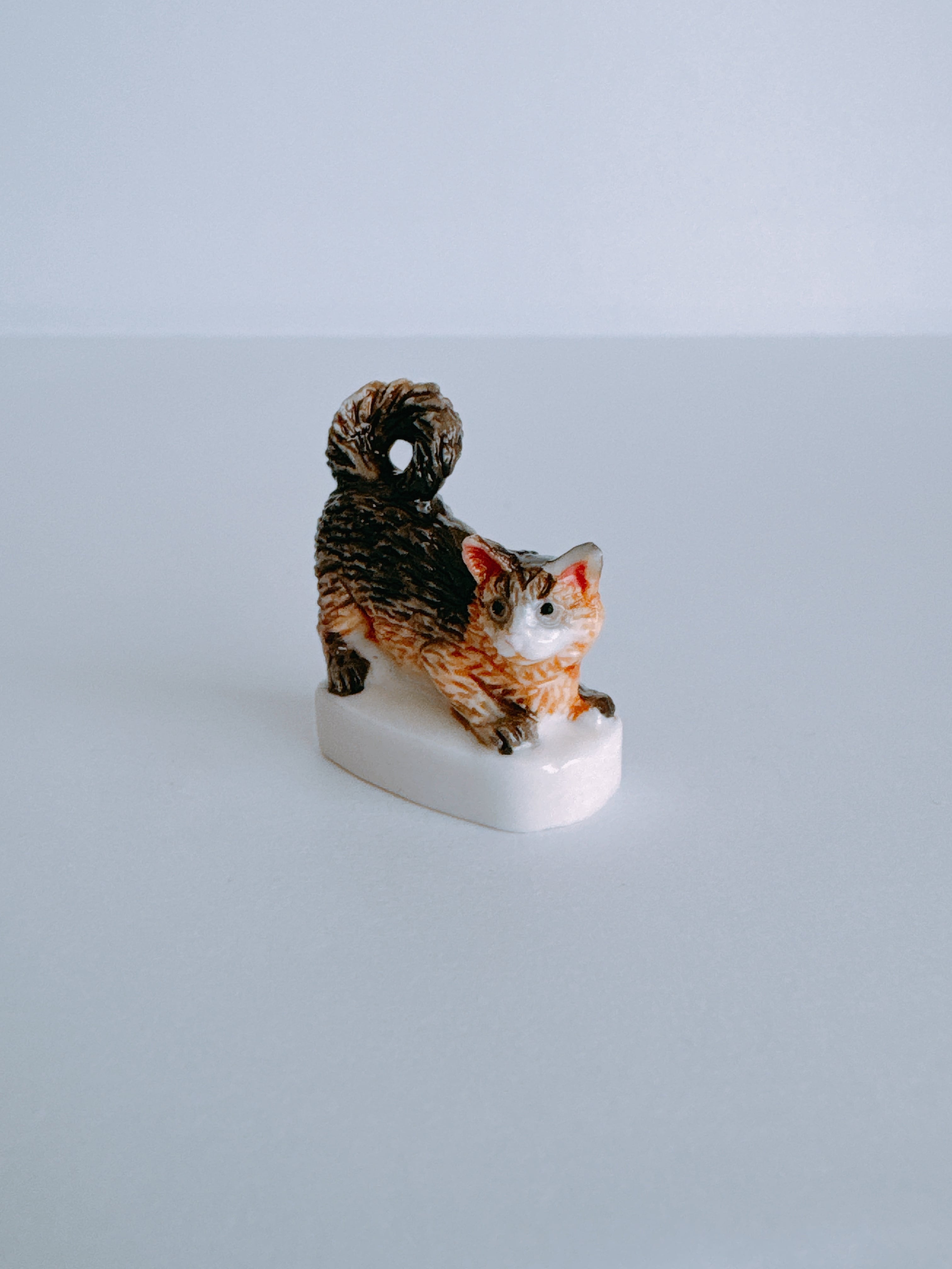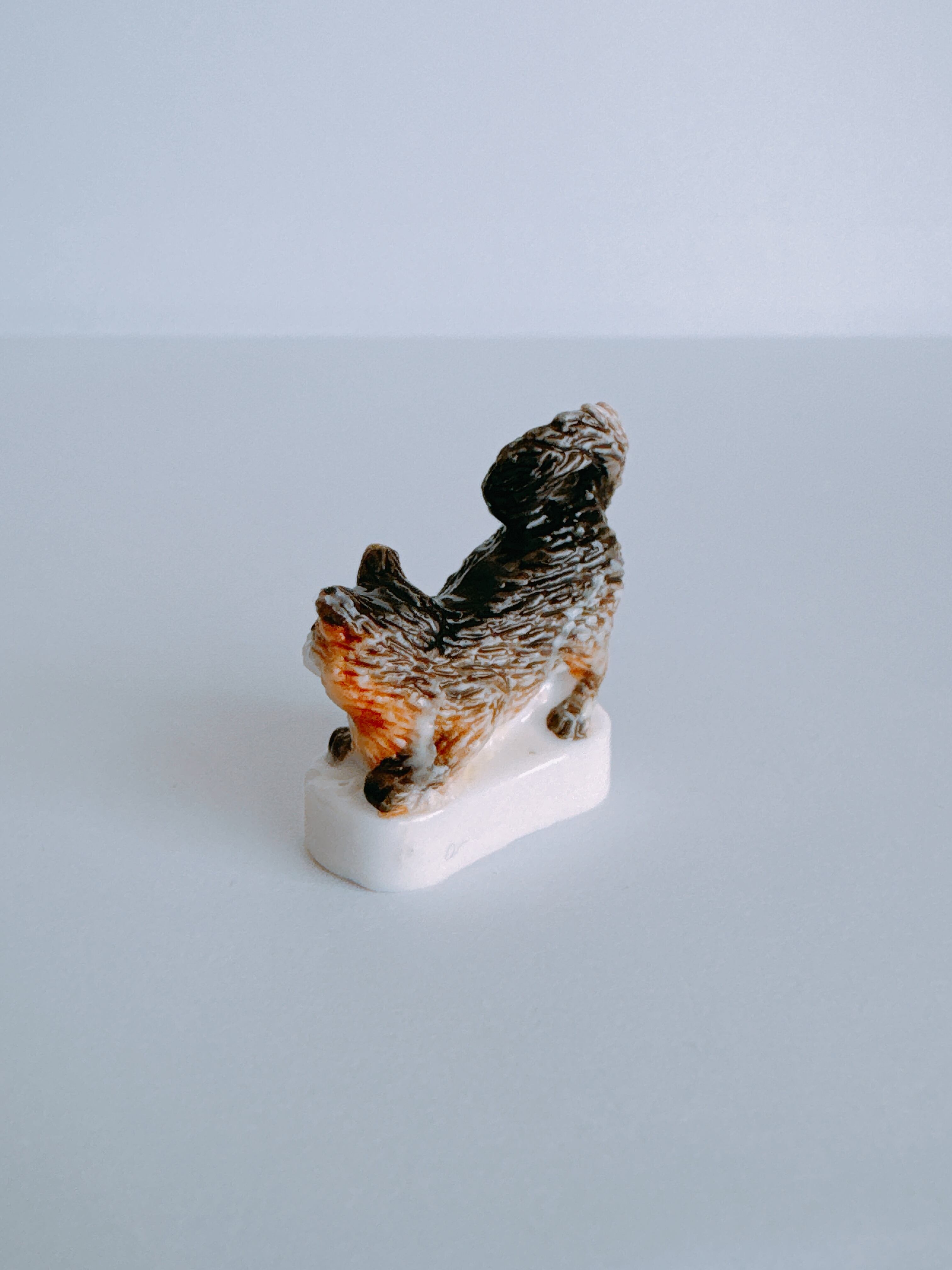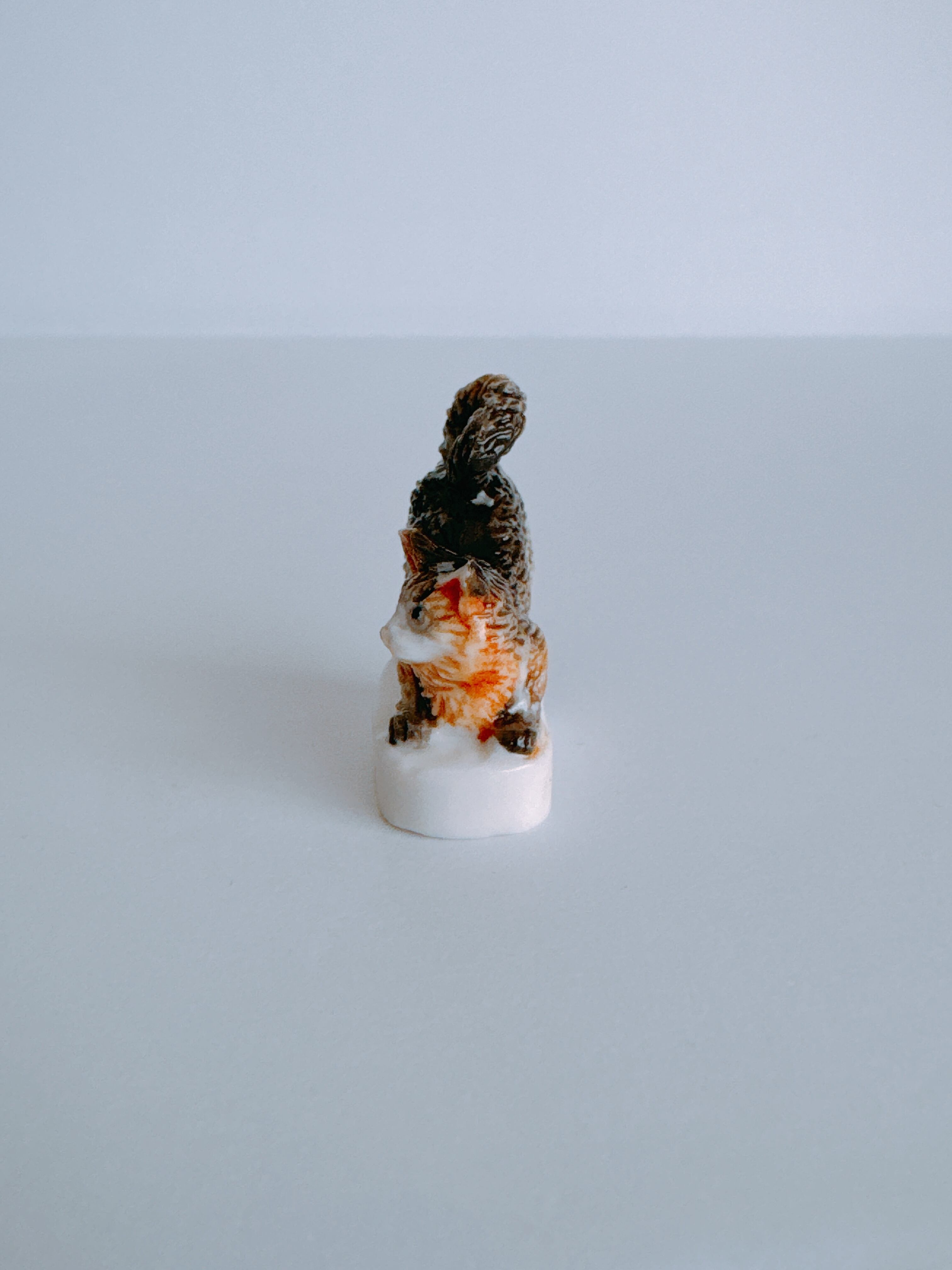 丸く巻いた尾が、軽やかなリズムを添えます。