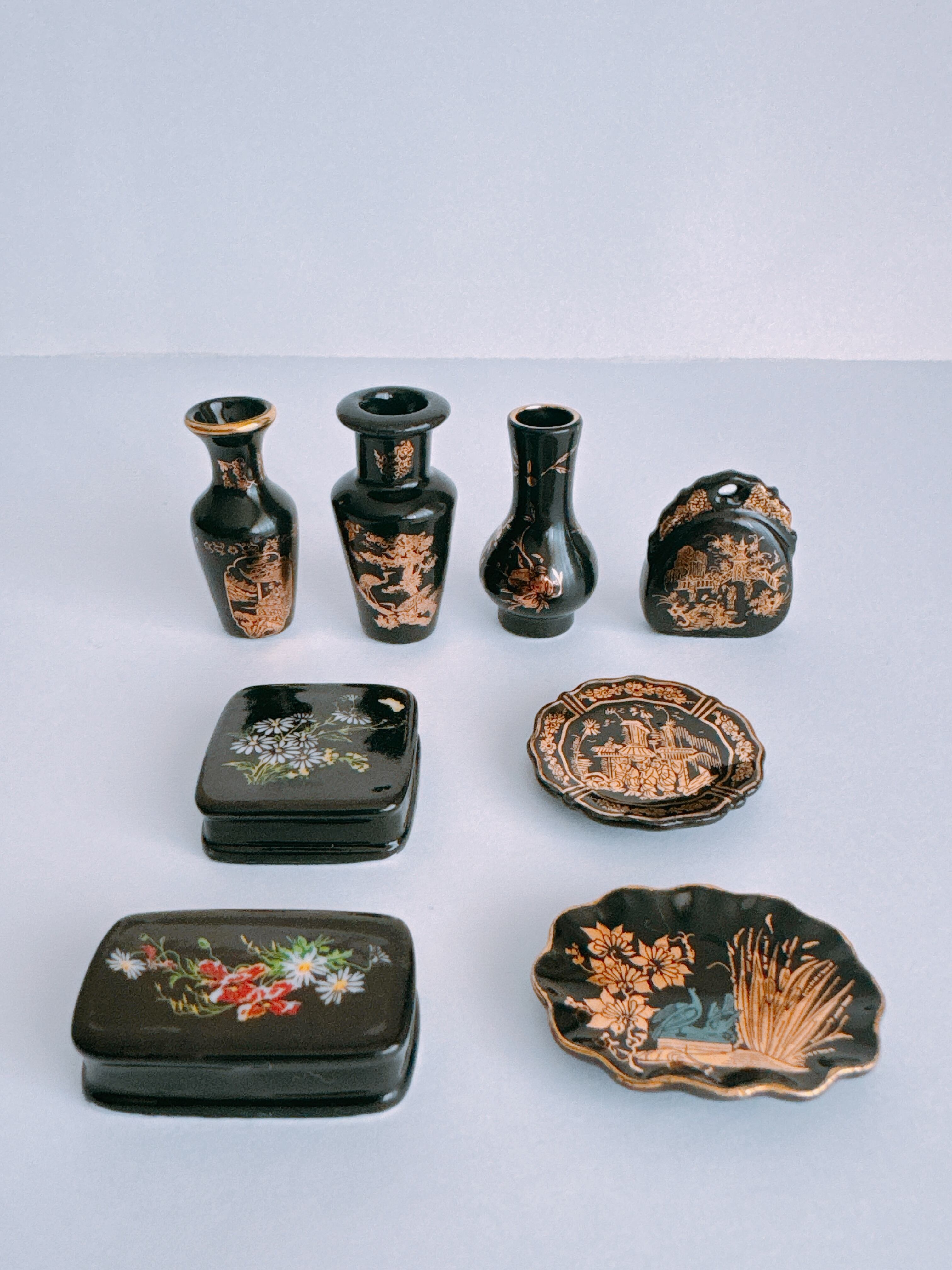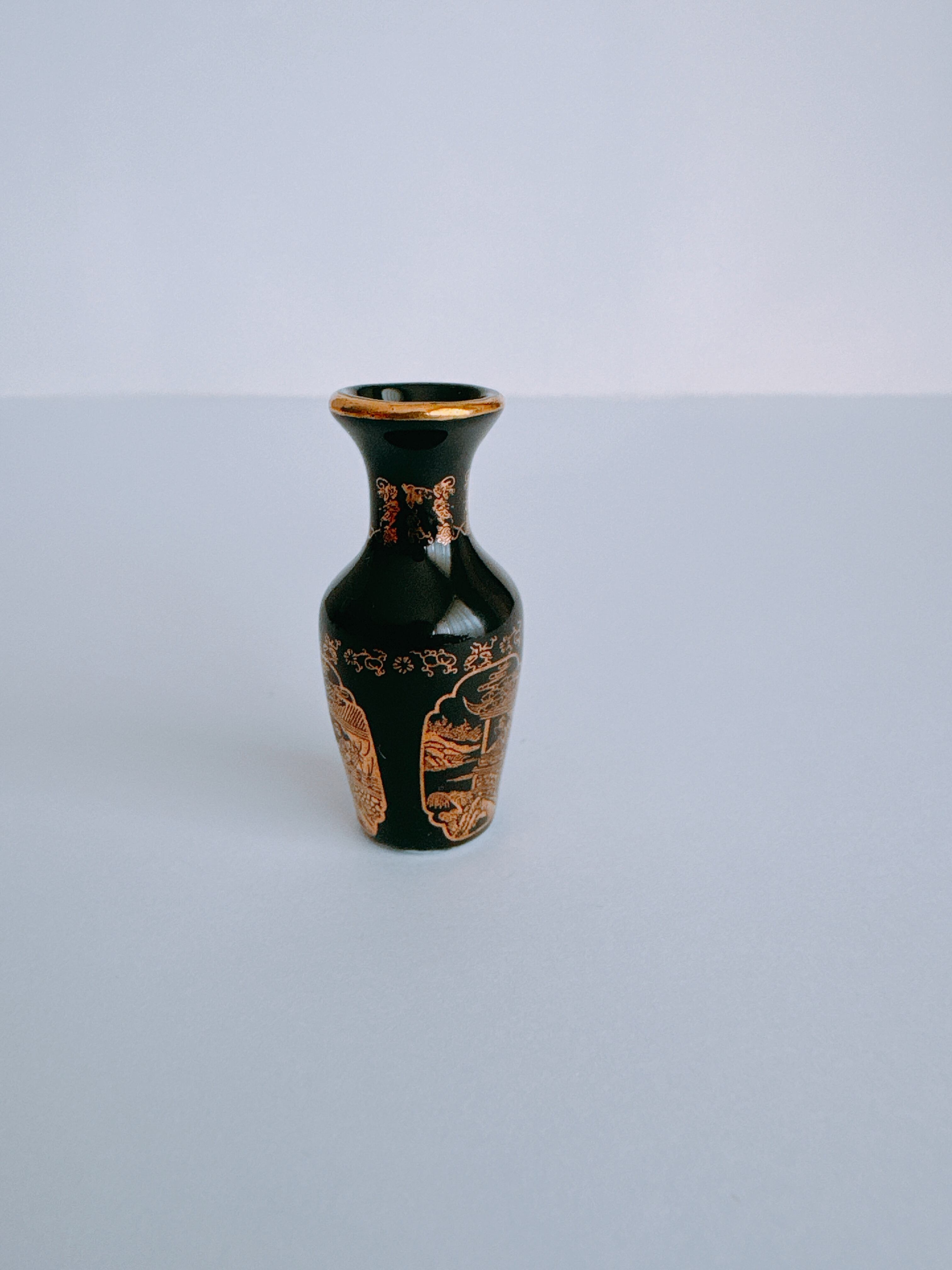 黒の深みに金彩が映える、凛とした佇まいの花瓶。