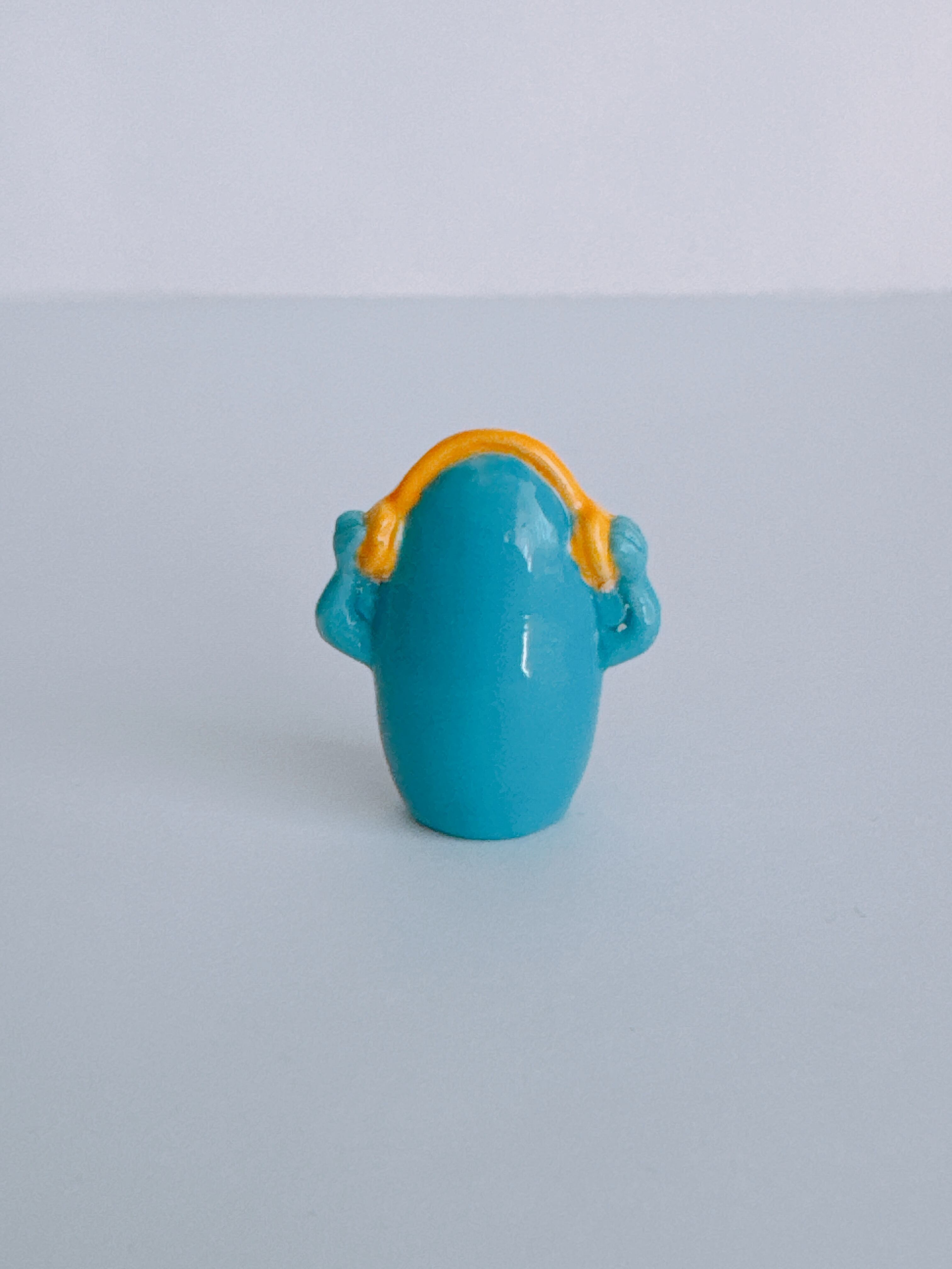 ヘッドフォンを身につけ、音楽を楽しむBarbibulのフェーヴ。