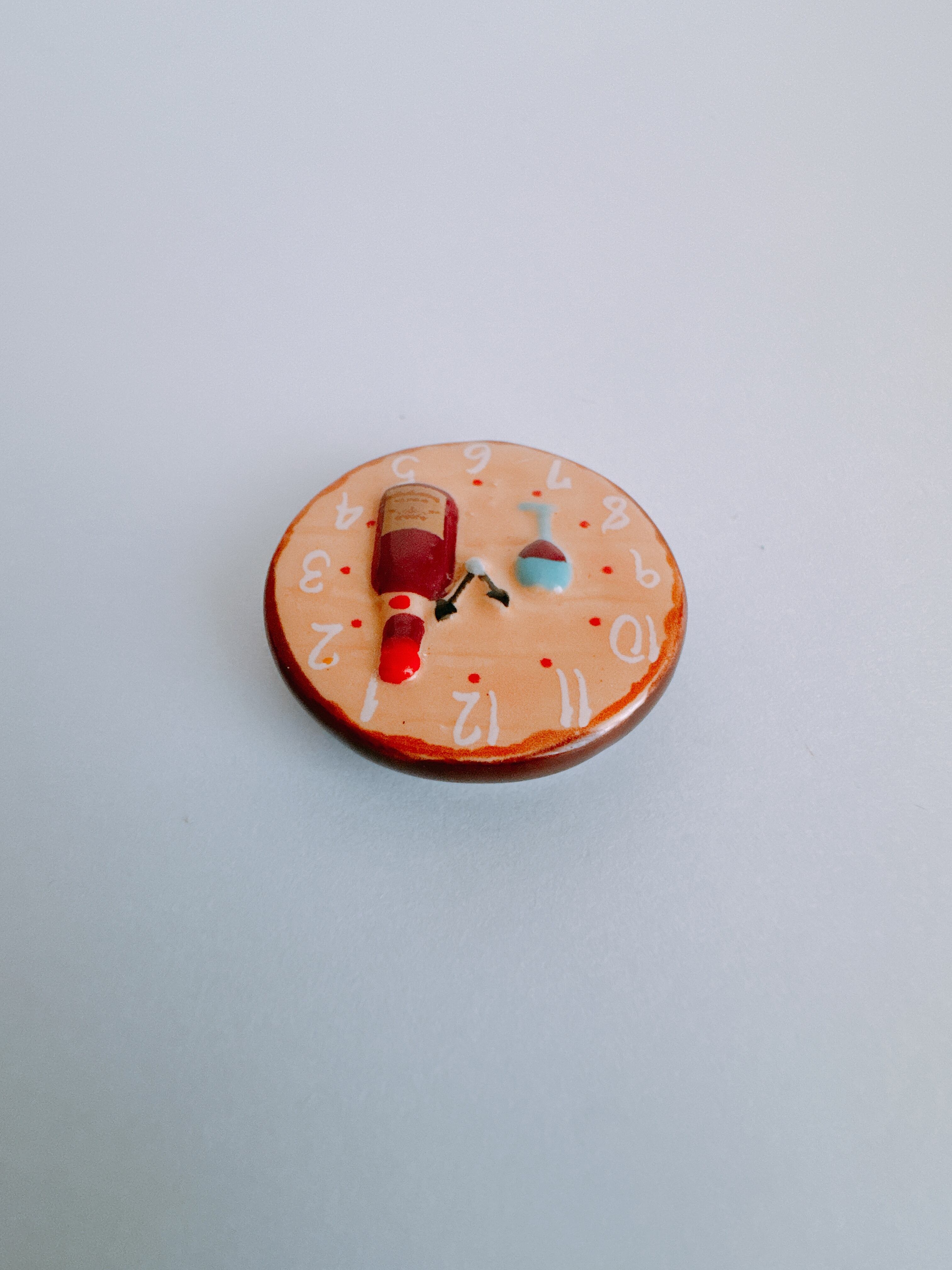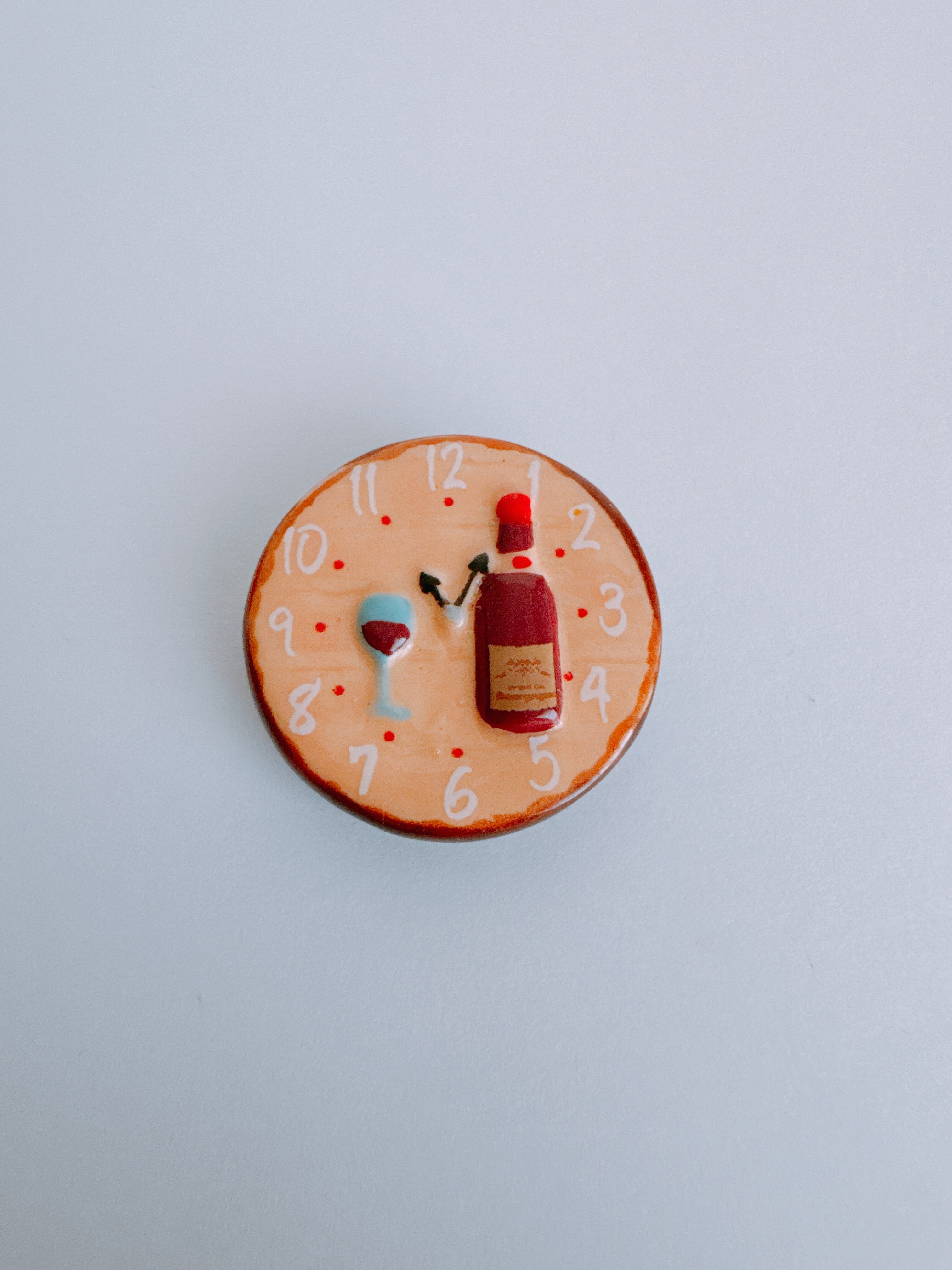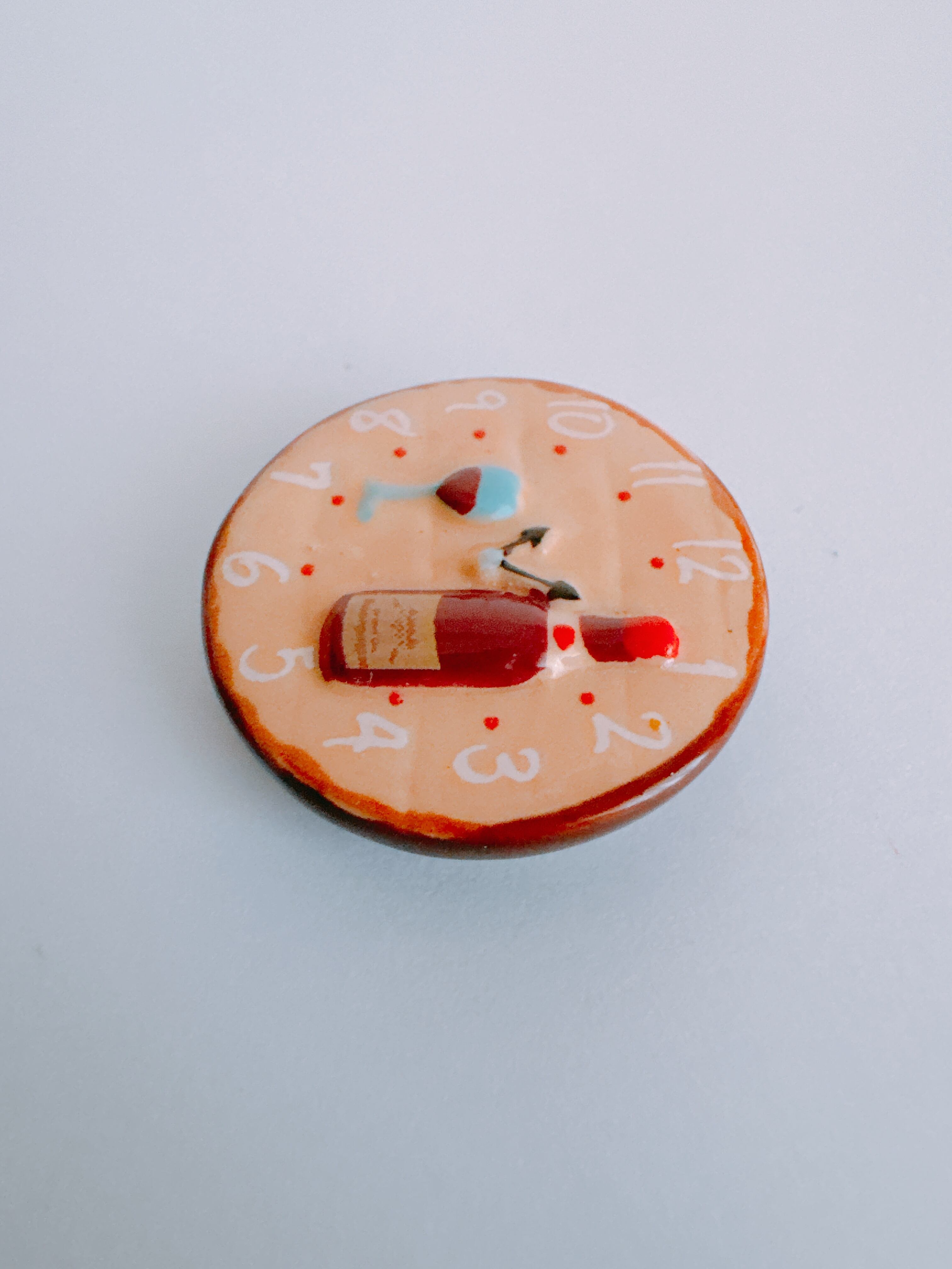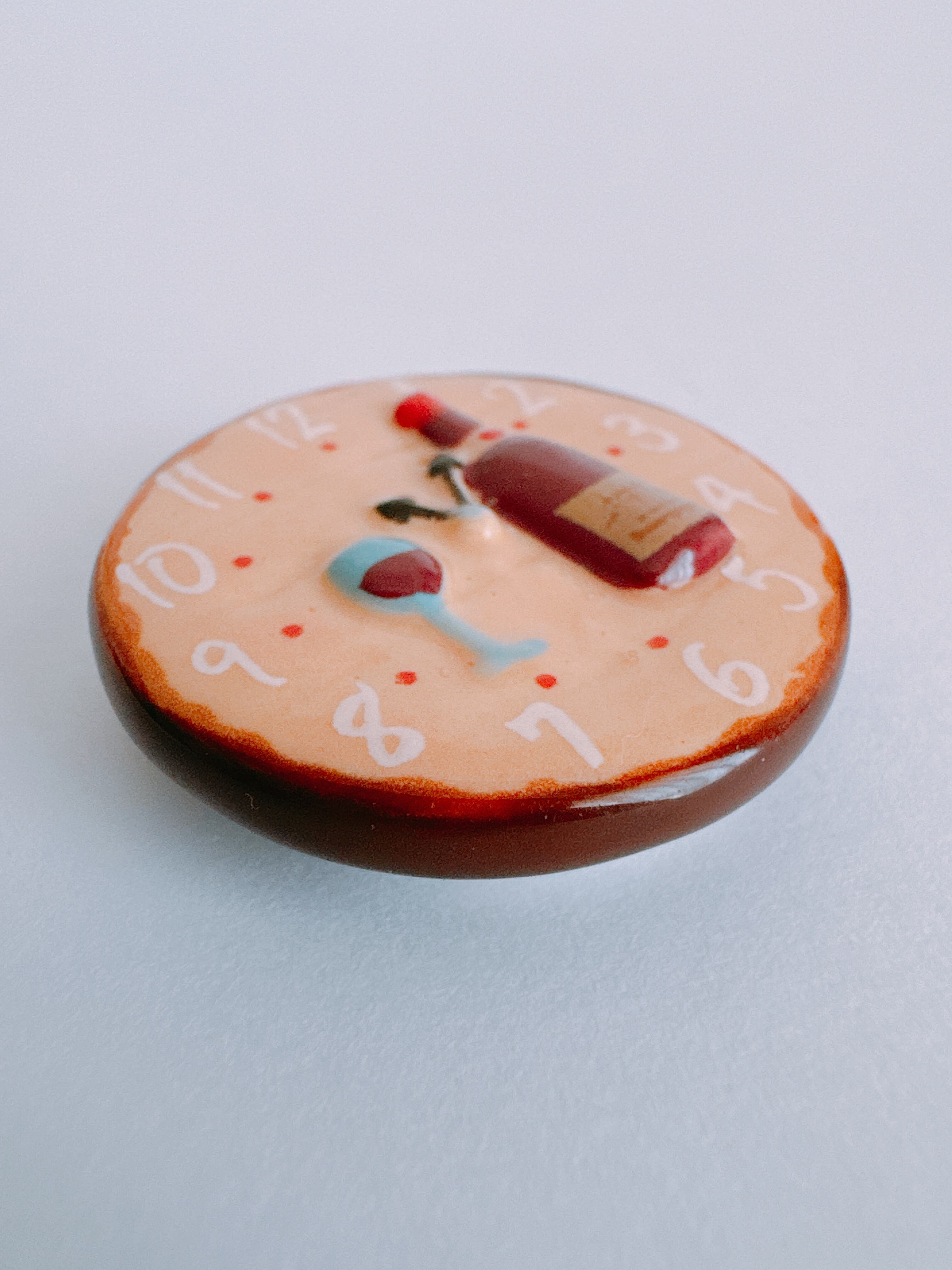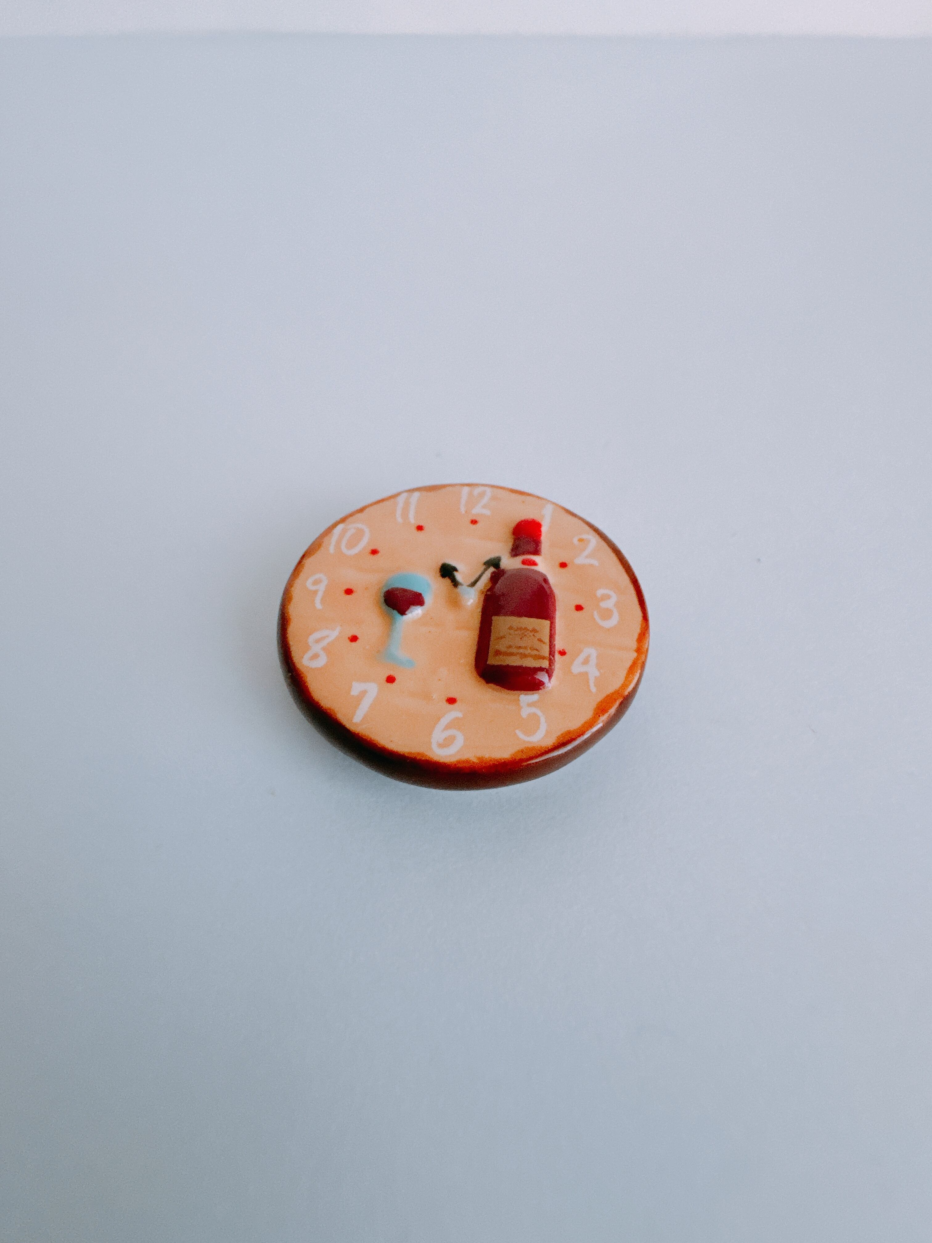 ワインボトルとグラスが描かれた、小さな時計。