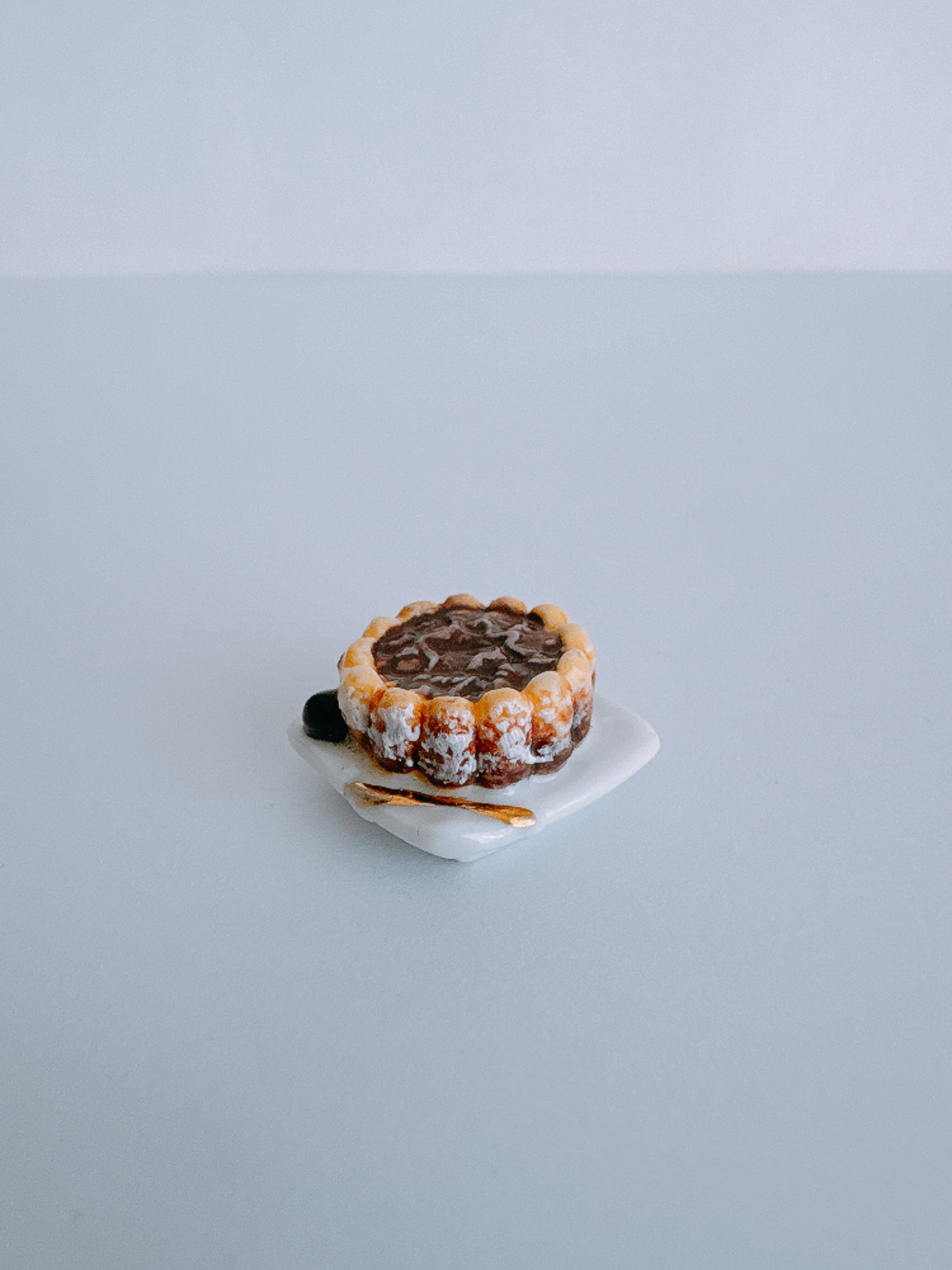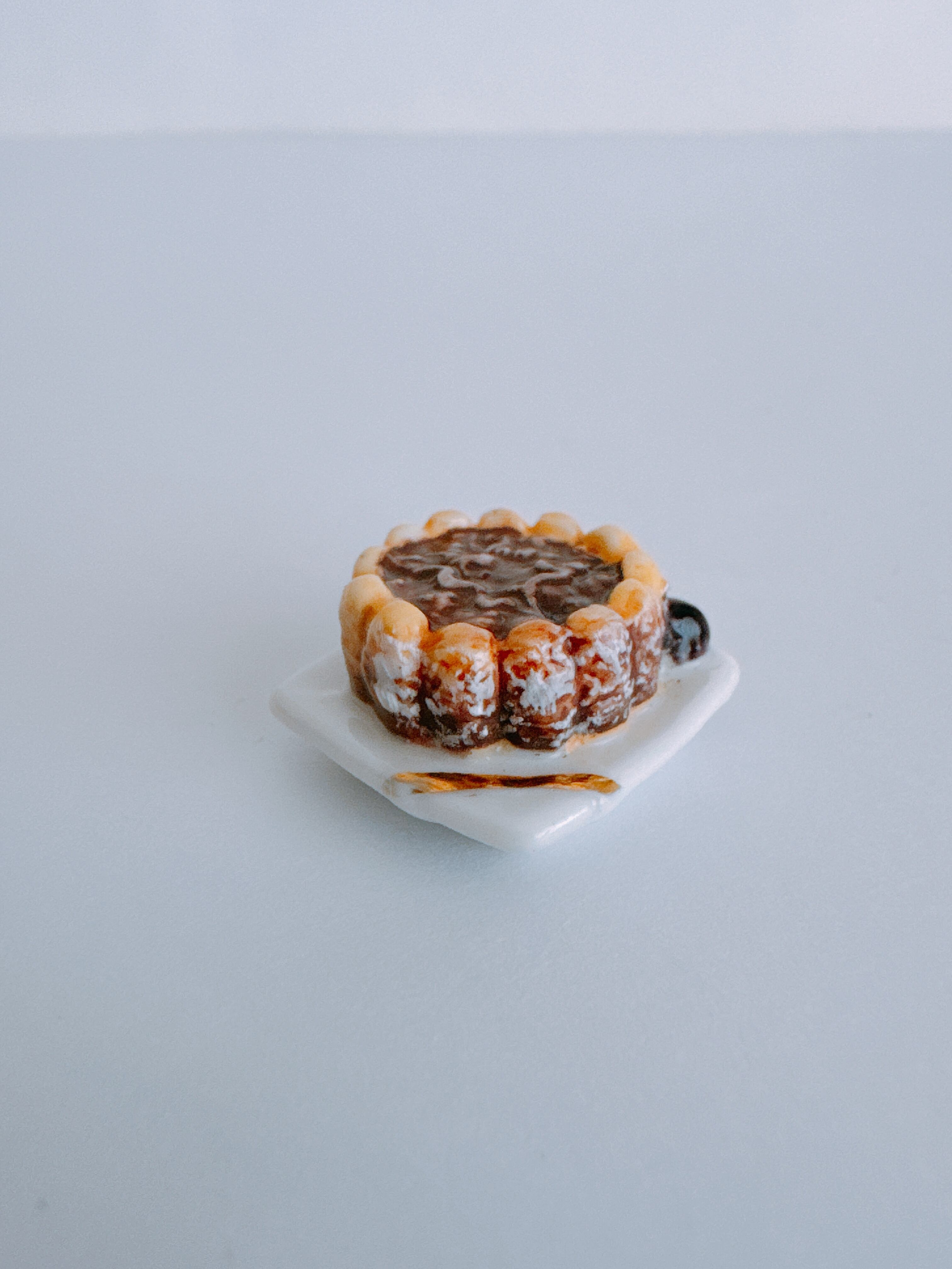 ビスキュイに包まれた、やわらかなショコラのシャルロット。